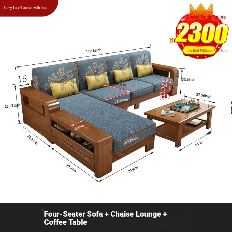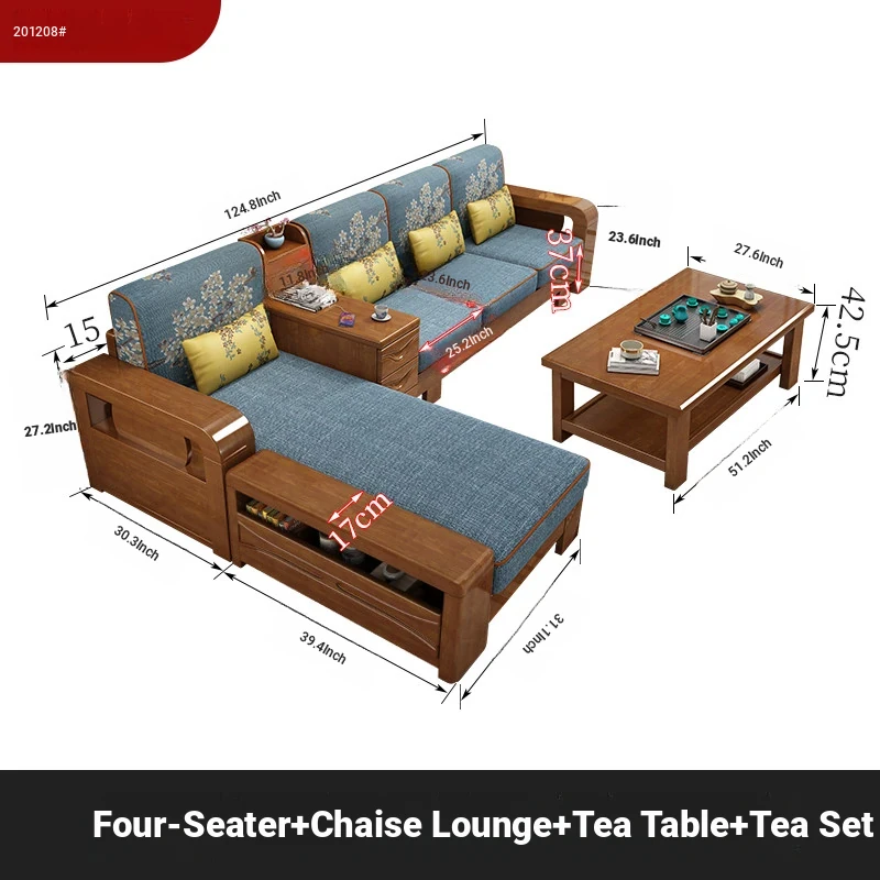 Four-person + imperial concubine couch + middle box + tea table without pull bed