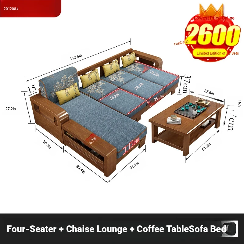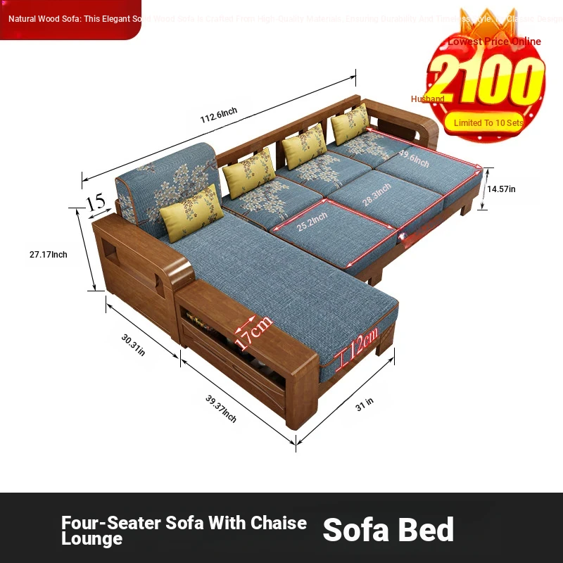 Modern Solid Wood Sofa Bed - Multi-Functional Fabric Sofa for Small Spaces, Versatile Expandable Sleeper Couch for Your Stylish Living Room
