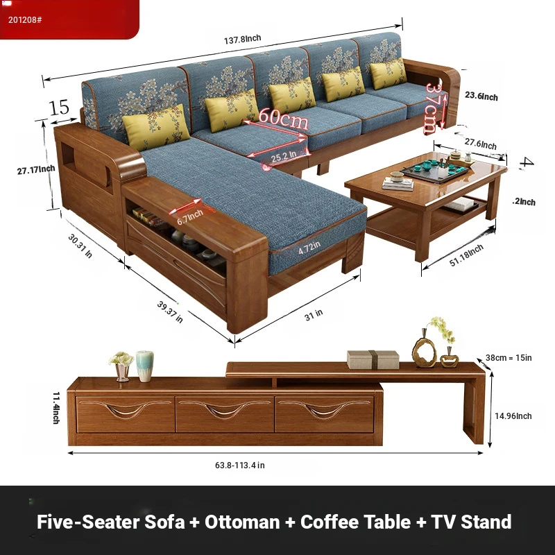 Five-person + imperial concubine + tea table + TV cabinet without pulsator