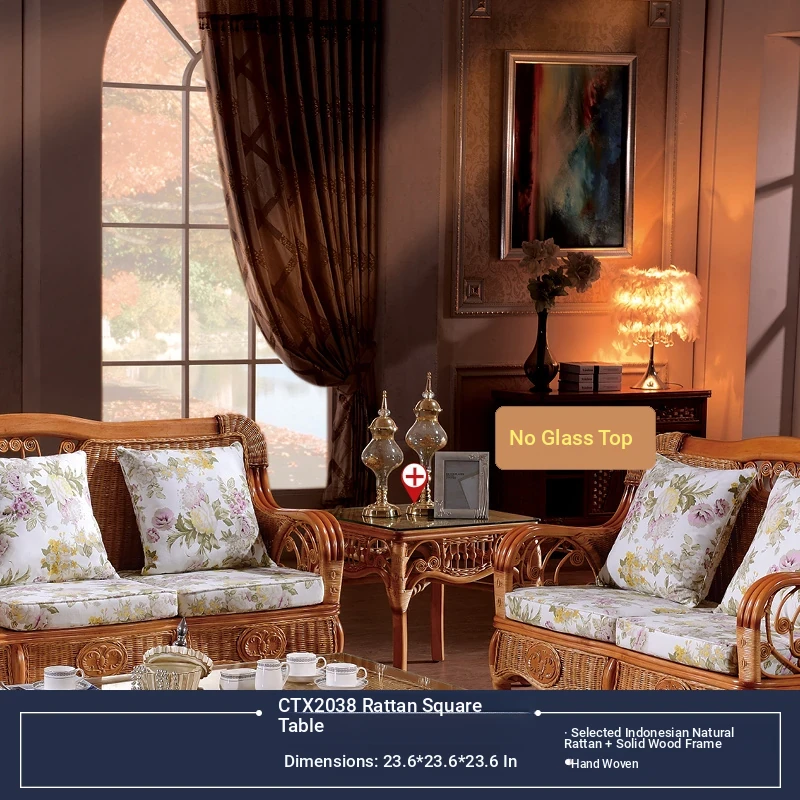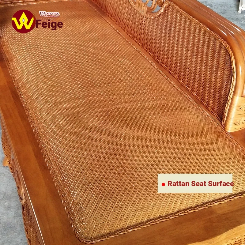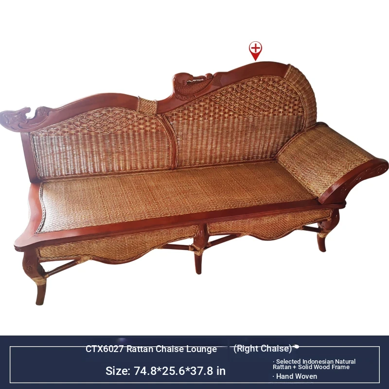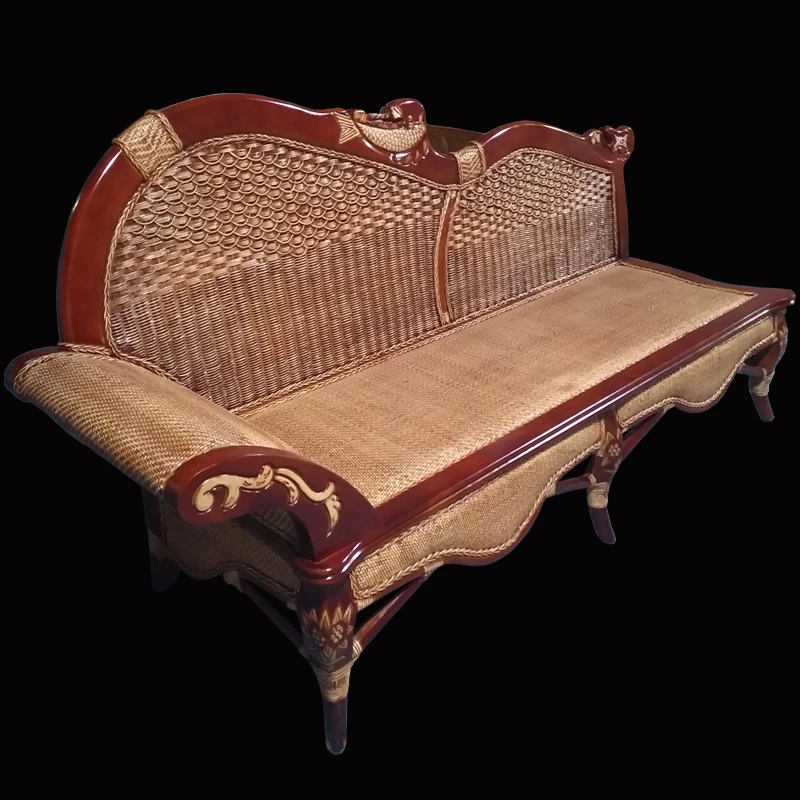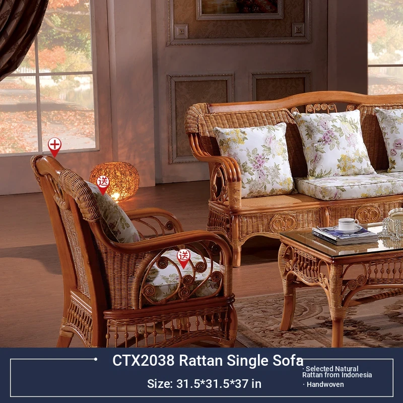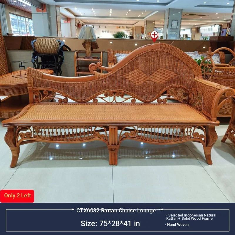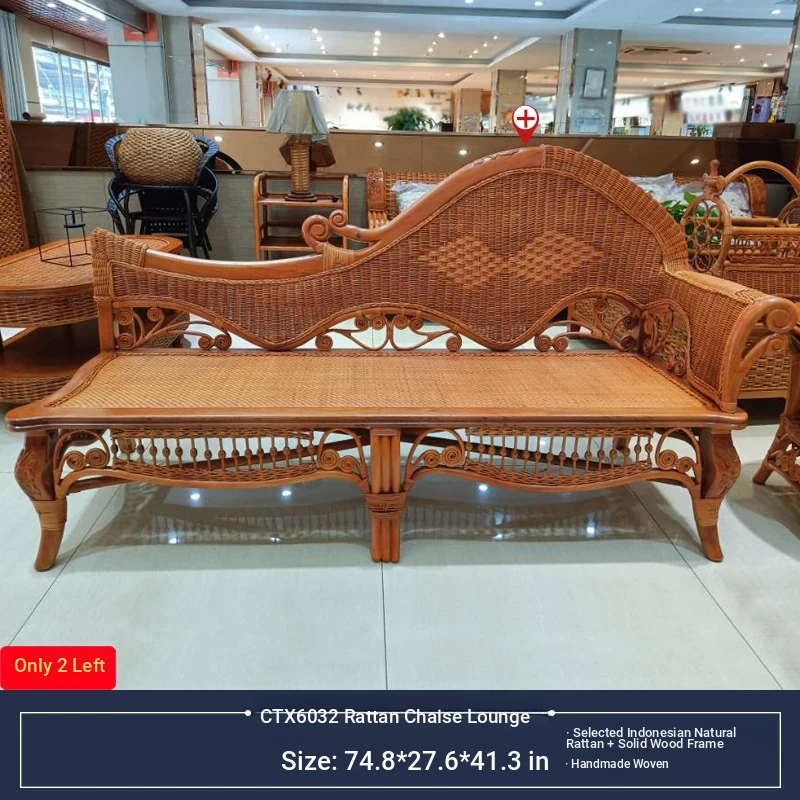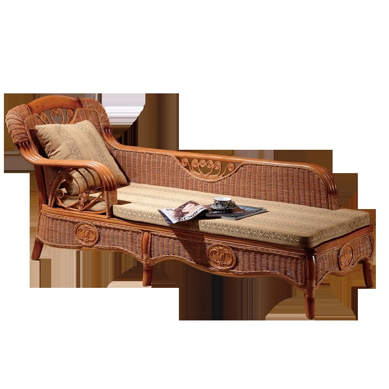 Natural Rattan Sofa Set with Coffee Table, Rattan Chaise Lounge Chair from Indonesia - Stylish Single Bed Lounger with Cushions for Ultimate Comfort