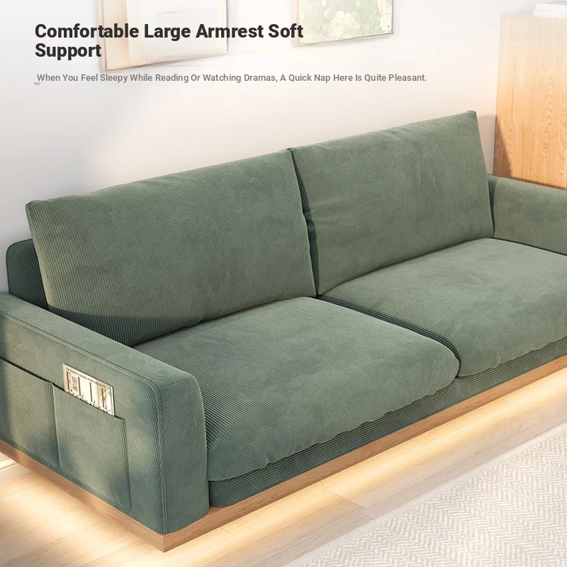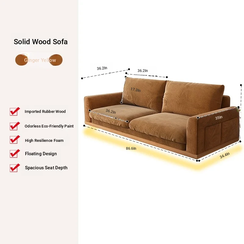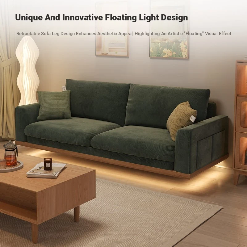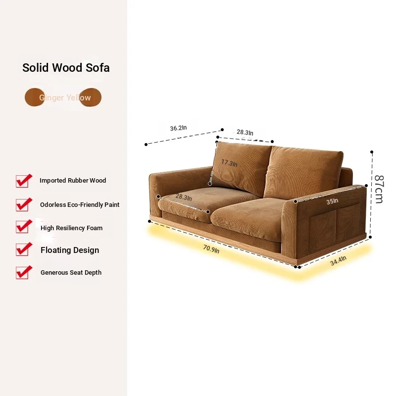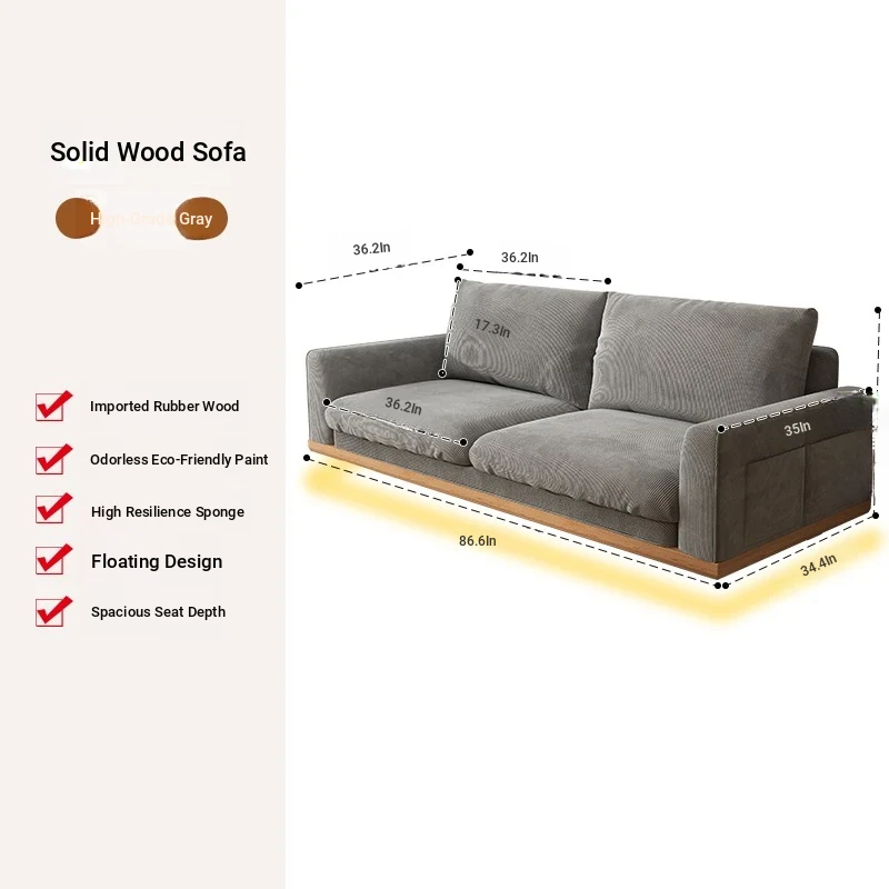 New Minimalist Floating Solid Wood Sofa for Small Spaces – Creamy Modern Japanese Style Two-Person Leisure Fabric Couch for Your Cozy Living Room