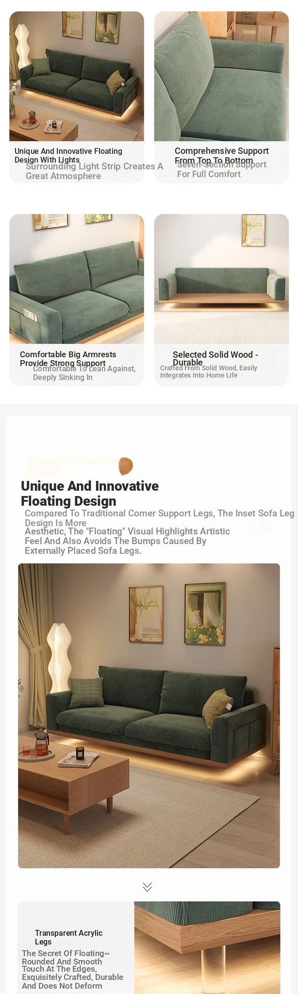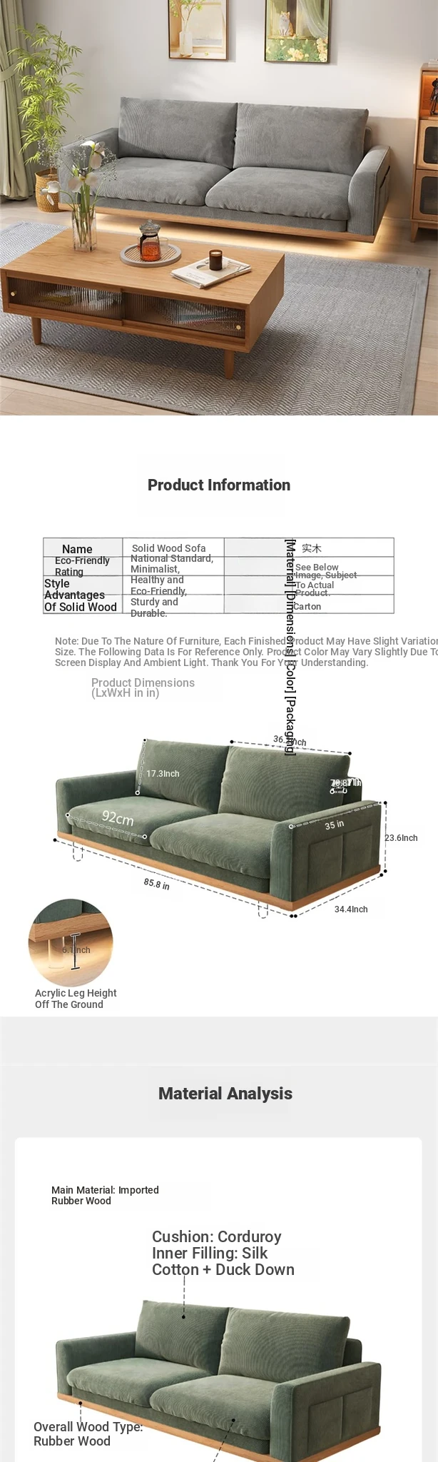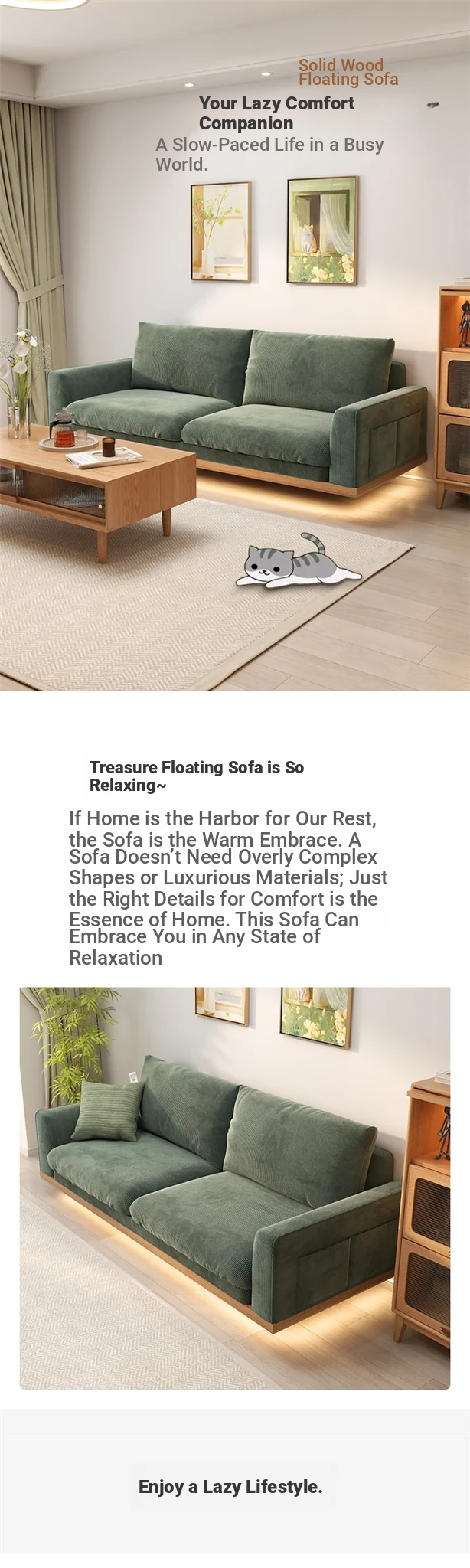 New Minimalist Floating Solid Wood Sofa for Small Spaces – Creamy Modern Japanese Style Two-Person Leisure Fabric Couch for Your Cozy Living Room