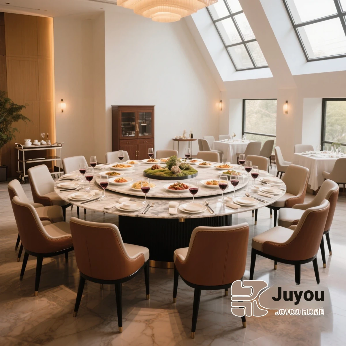Natural marble 125.98 ins dining table (electric turntable)