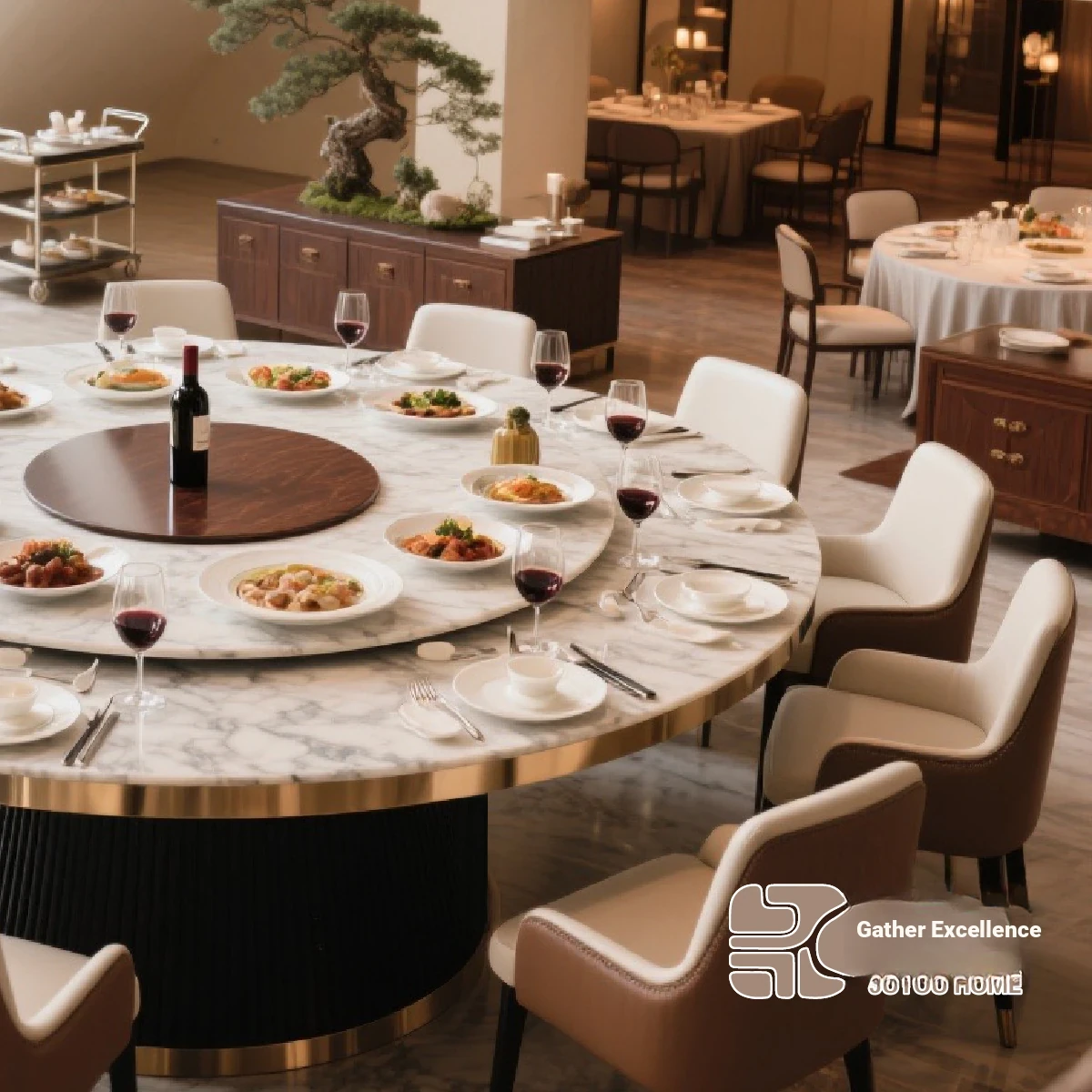Natural marble 141.73 ins dining table (electric turntable)
