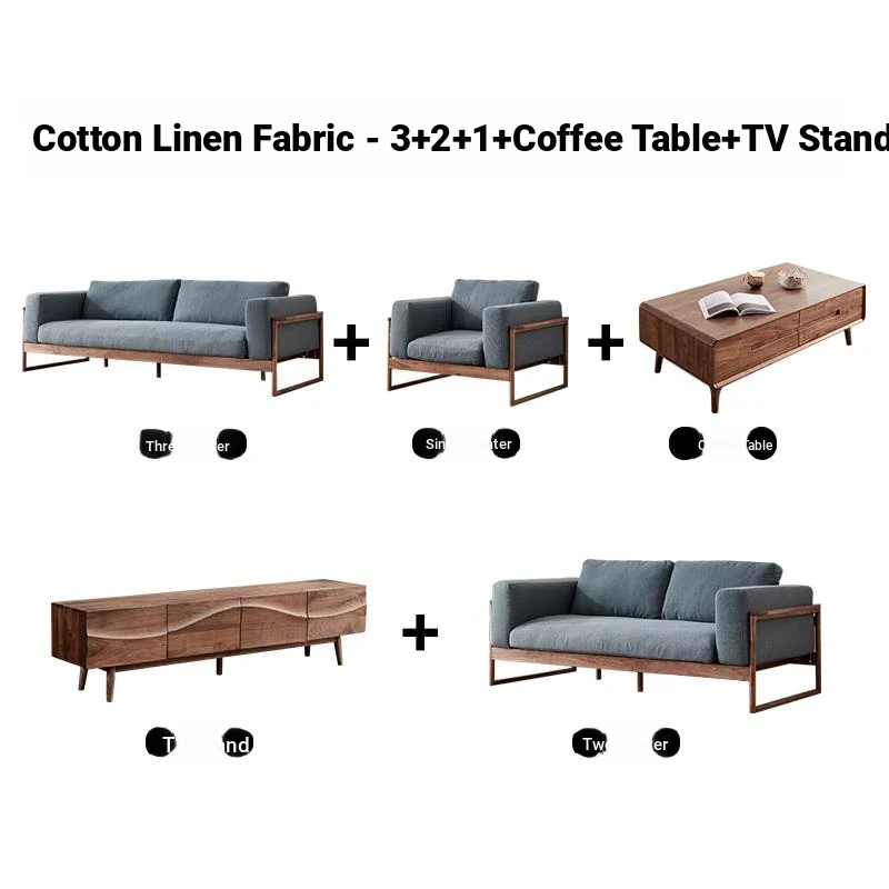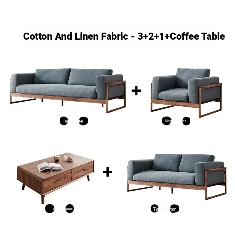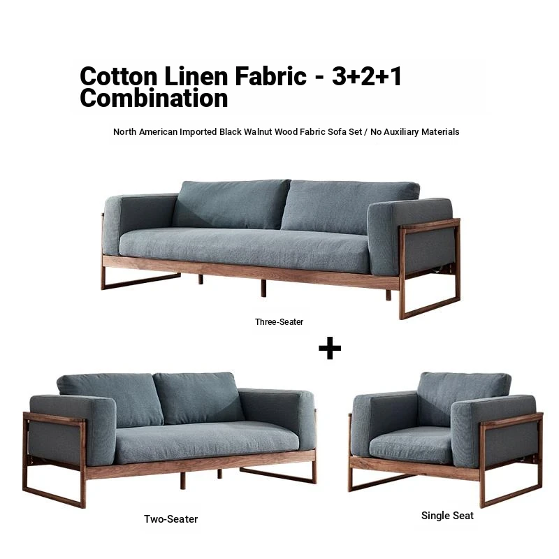 Black walnut down sofa cotton linen fabric (1+2+3 combination)