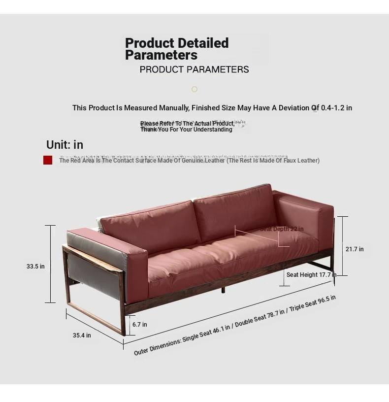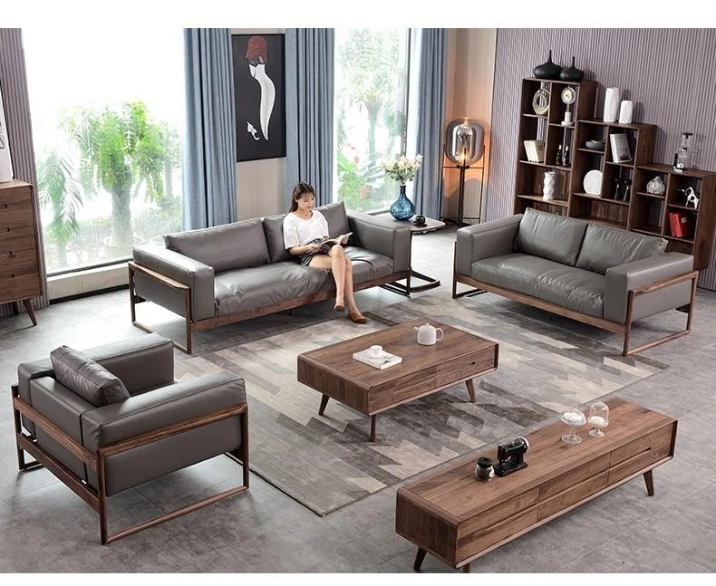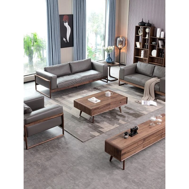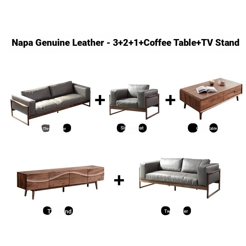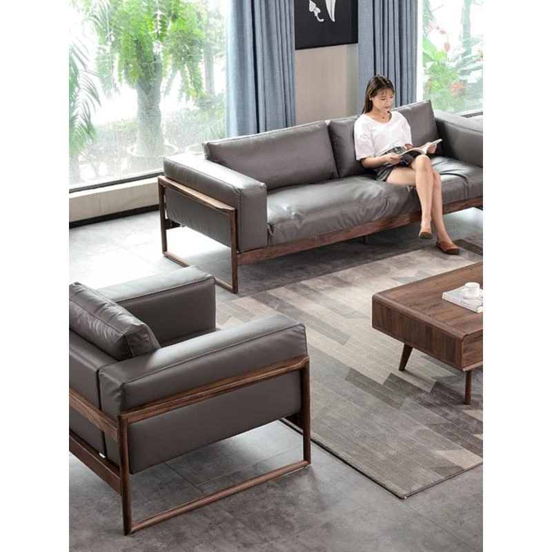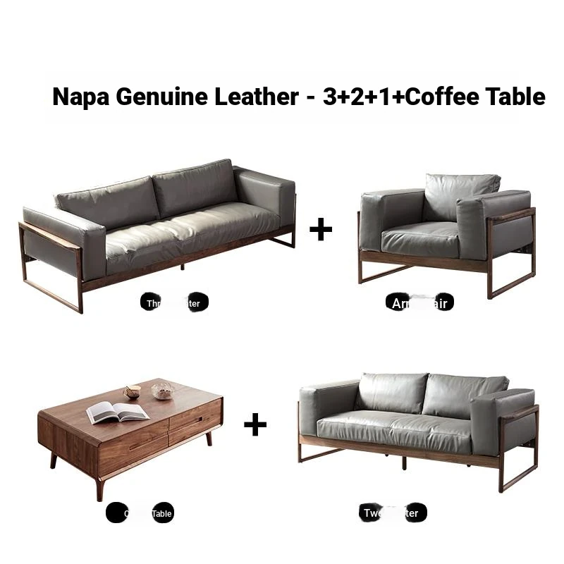 North American black walnut down sofa Napa leather (1+2+3 combination)