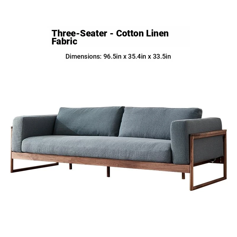 Black walnut down sofa cotton linen fabric (three people)