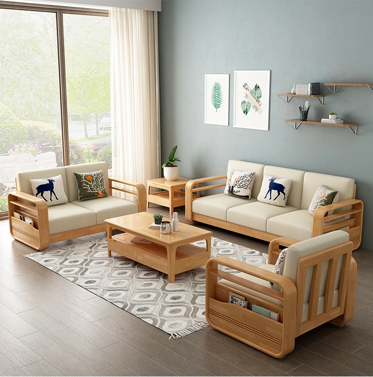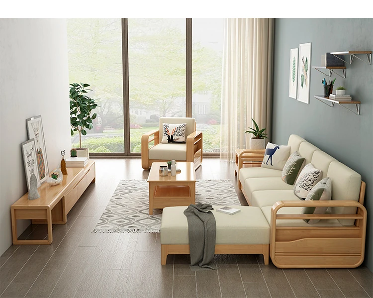 Nordic Solid Wood Sofa - Versatile High-Storage Design for All Seasons, Perfect for Small Spaces, Modern Minimalist Style, Fully Wooden, Ideal for Home Use