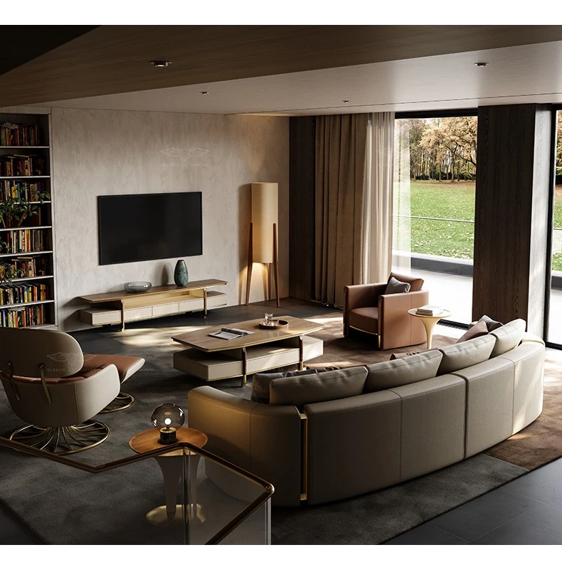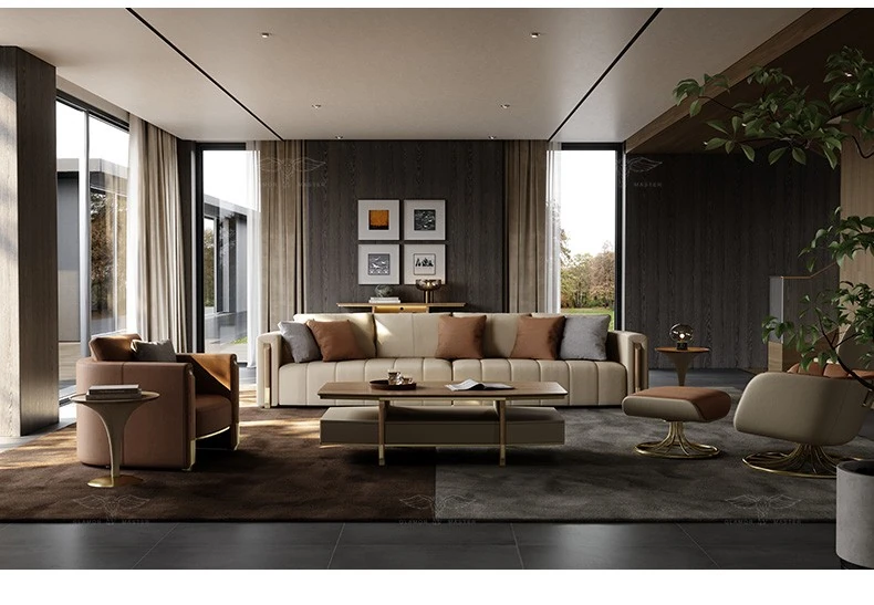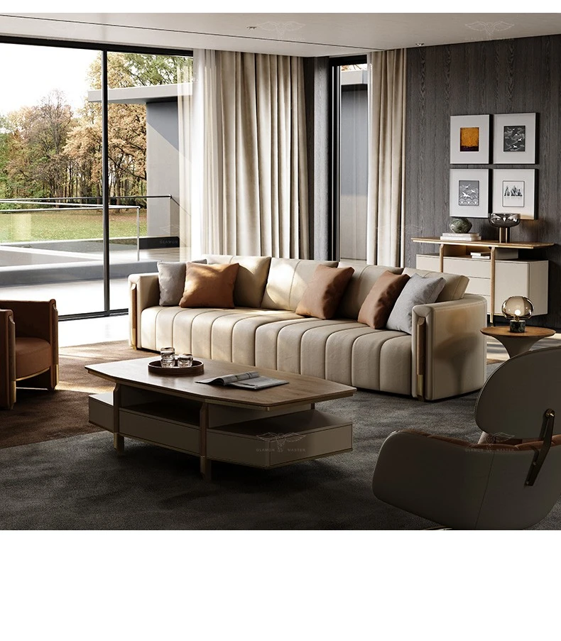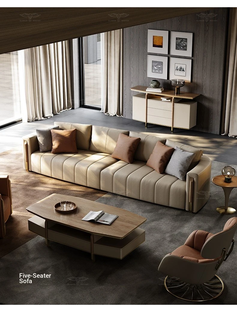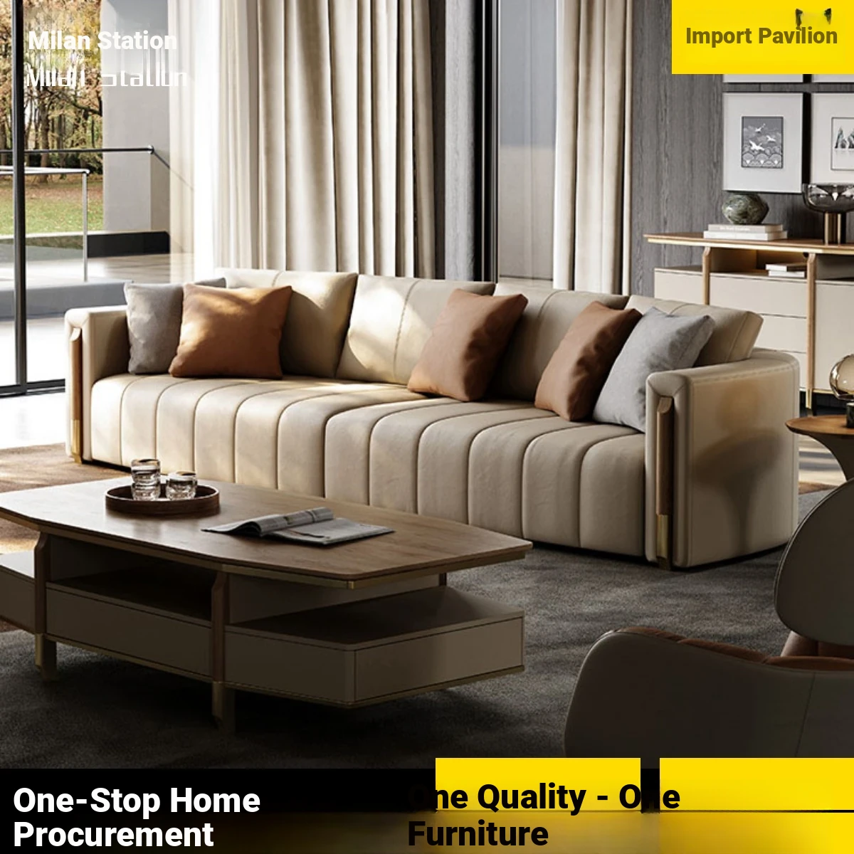 Premium Genuine Leather Sofa - Luxurious Light Luxury Design for High-End Villas and Spacious Living Rooms - New Arrival 2023