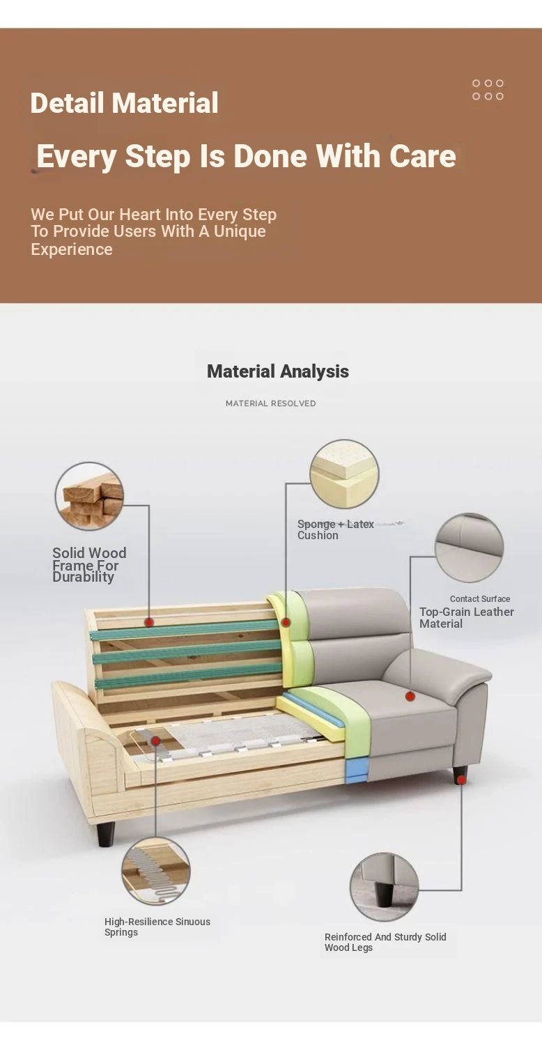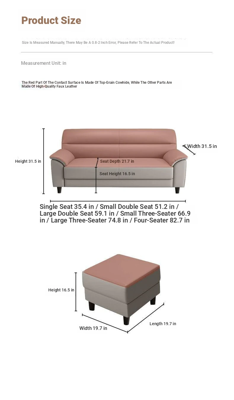 Premium Genuine Leather Sofa - Stylish 3-Seater for Small Spaces, Perfect for Living Room and Office Use, Made with Top-Grain Leather