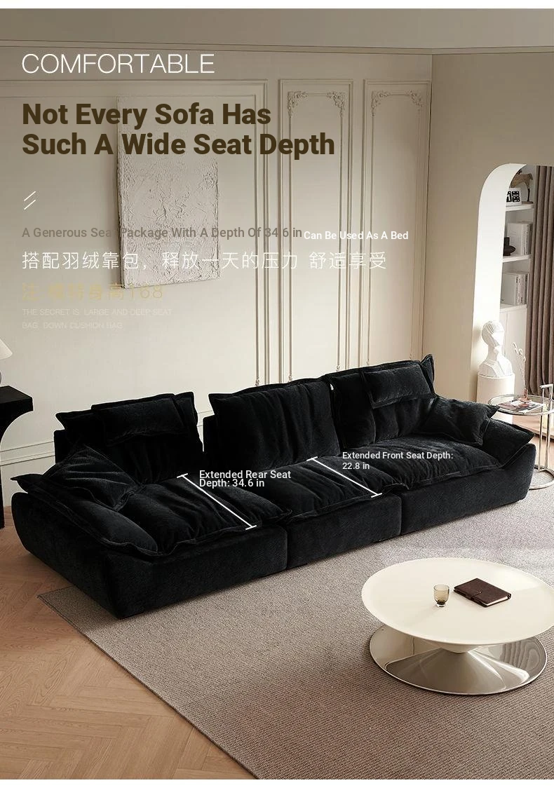 [Fixed backrest] 86.61 ins straight sofa