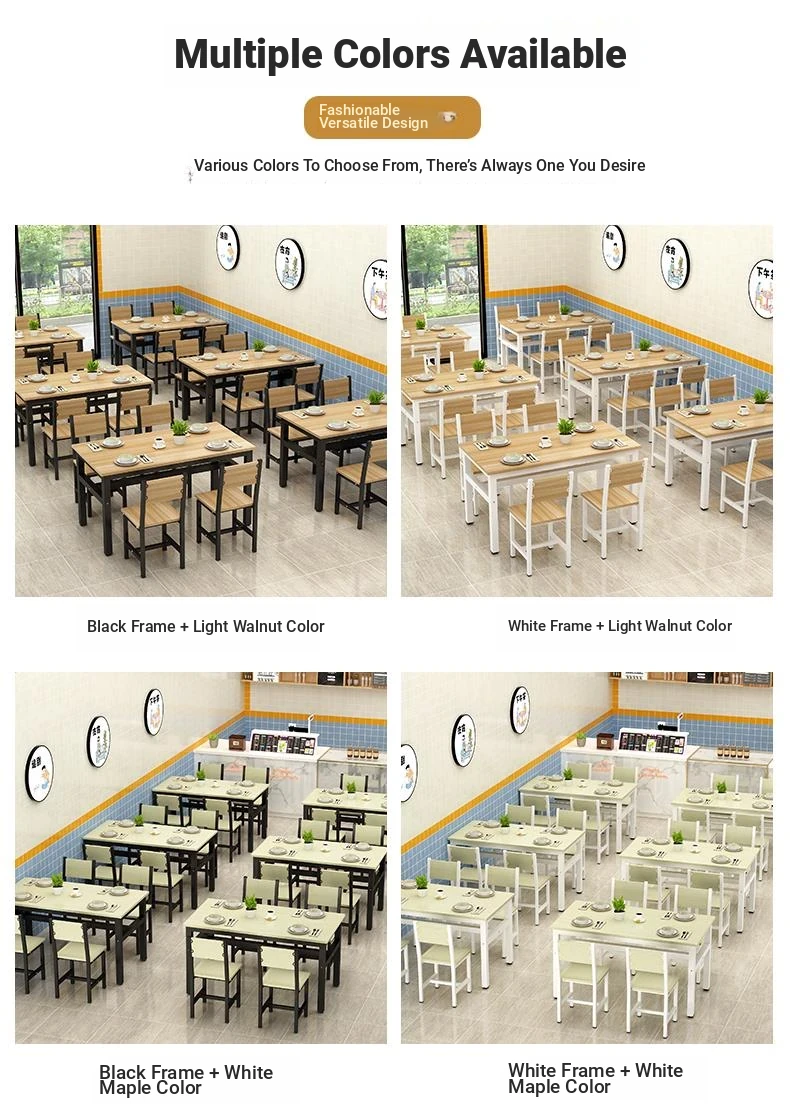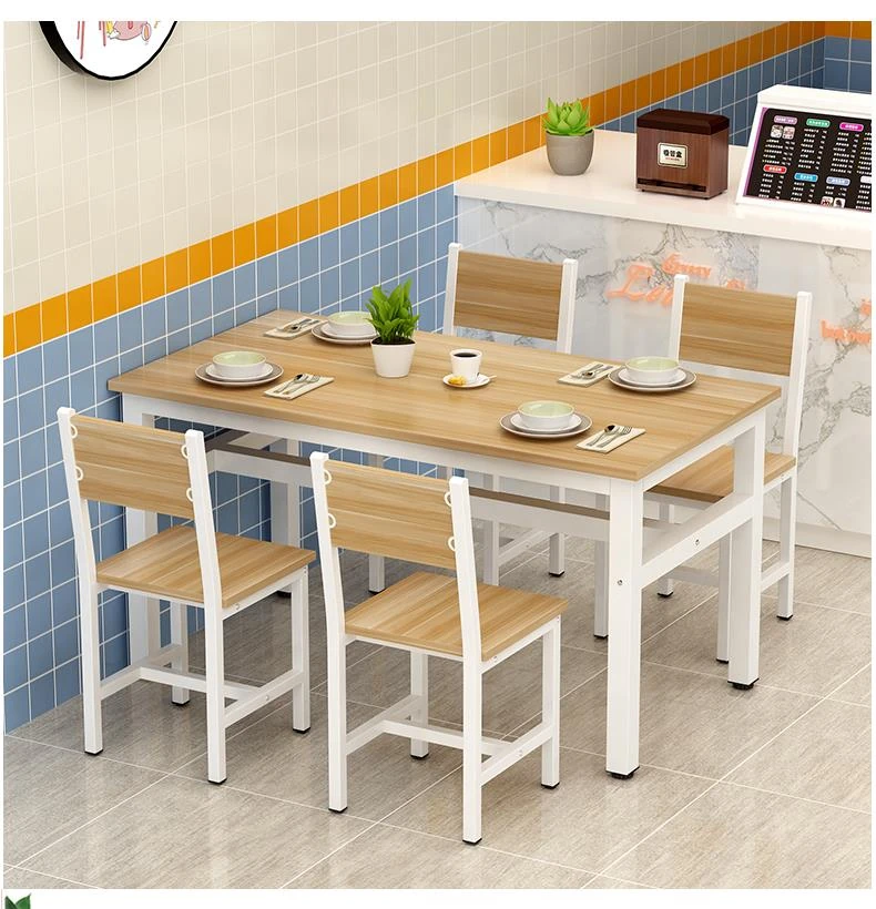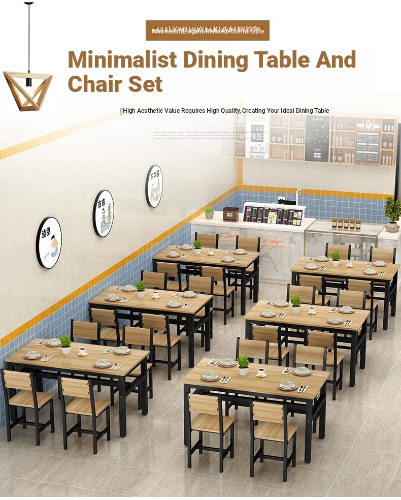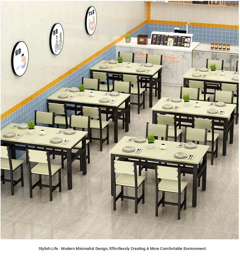 Rectangular Dining Table and Chair Set for Snack Bars, Noodle Shops, and Cafés – Perfect for Commercial Use in Breakfast and Fast Food Restaurants, Ideal for Home Dining
