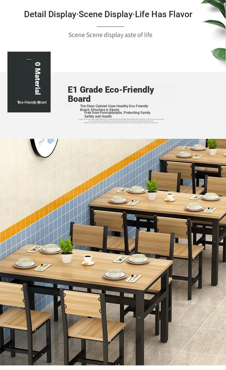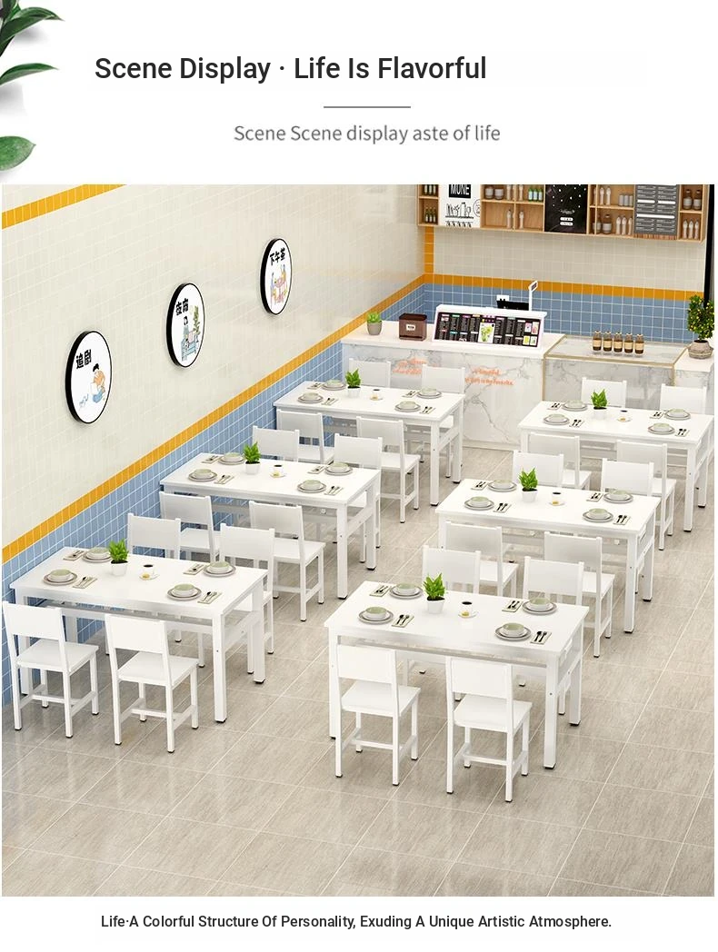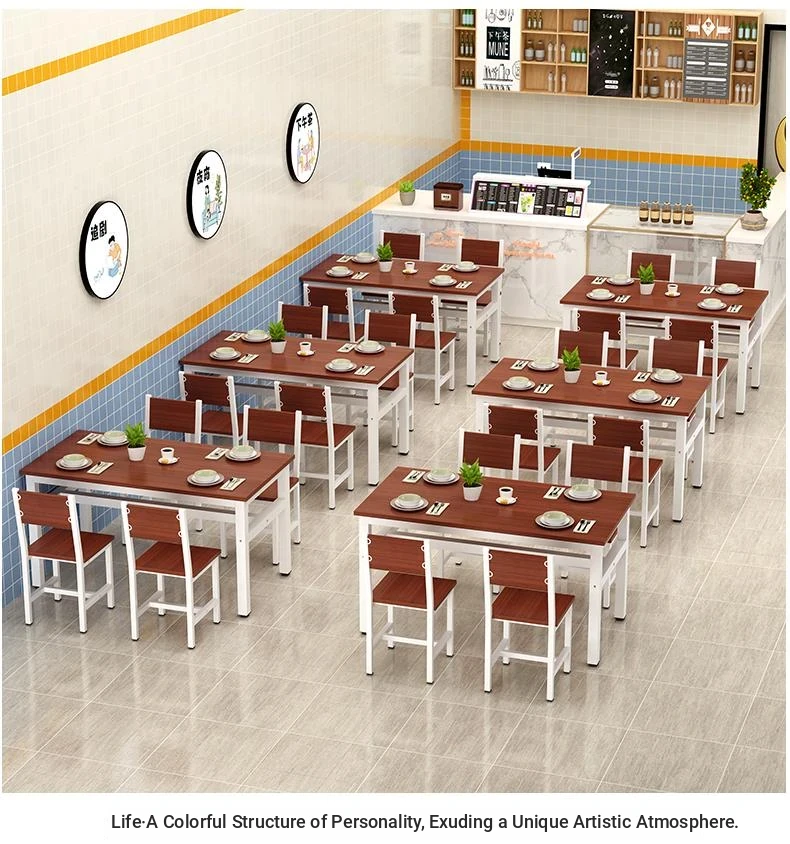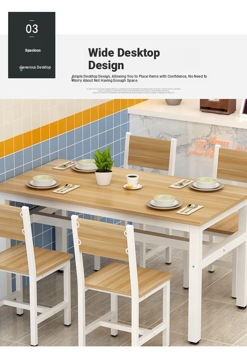 Rectangular Dining Table and Chair Set for Snack Bars, Noodle Shops, and Cafés – Perfect for Commercial Use in Breakfast and Fast Food Restaurants, Ideal for Home Dining