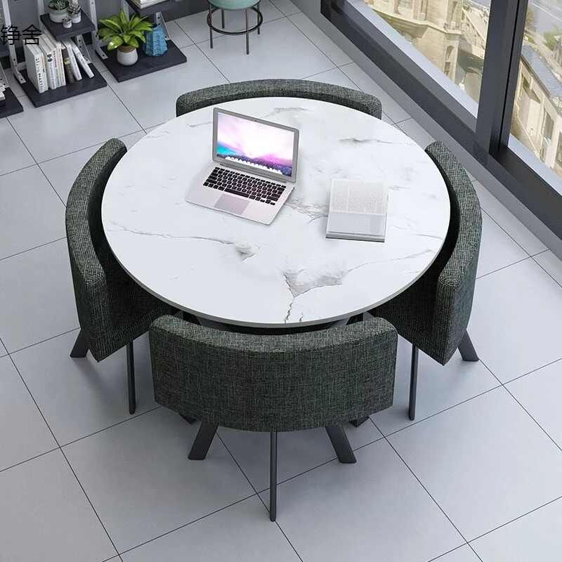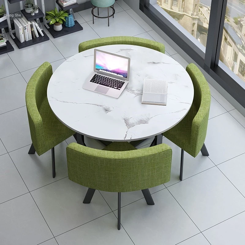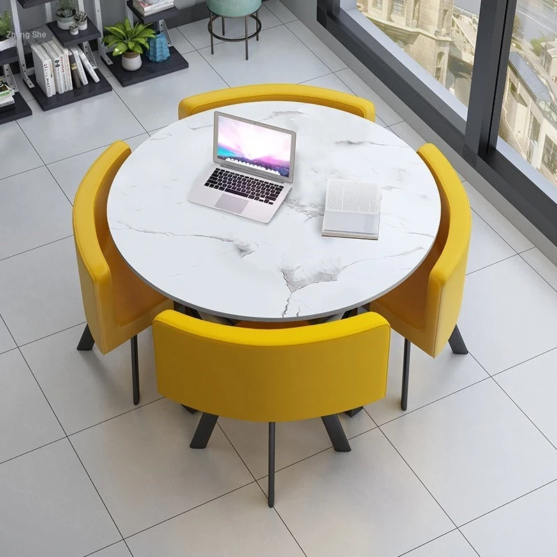 Sleek Reception Desk and Chair Set for Business Meetings - Ideal for Office Lounges and Client Engagement Areas, Compact Round Design for Modern Spaces