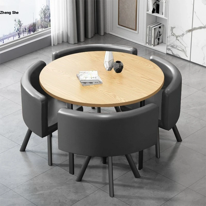 Grey circle + gray leather chair 1 table 4 chairs 80*80*75