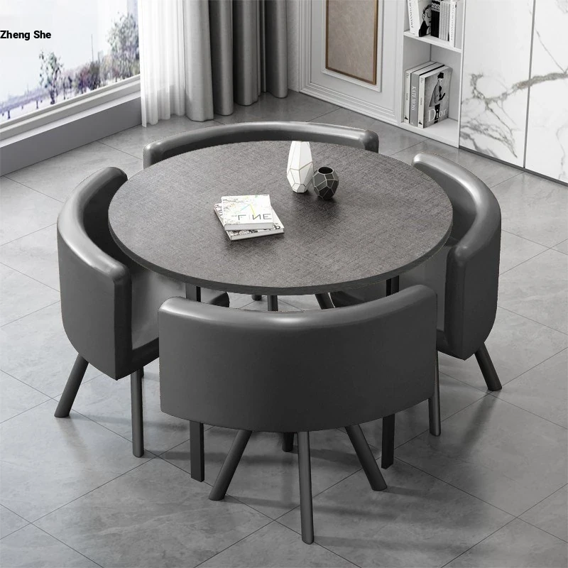 Grey surface circle + gray leather chair 1 table 4 chairs 90*90*75