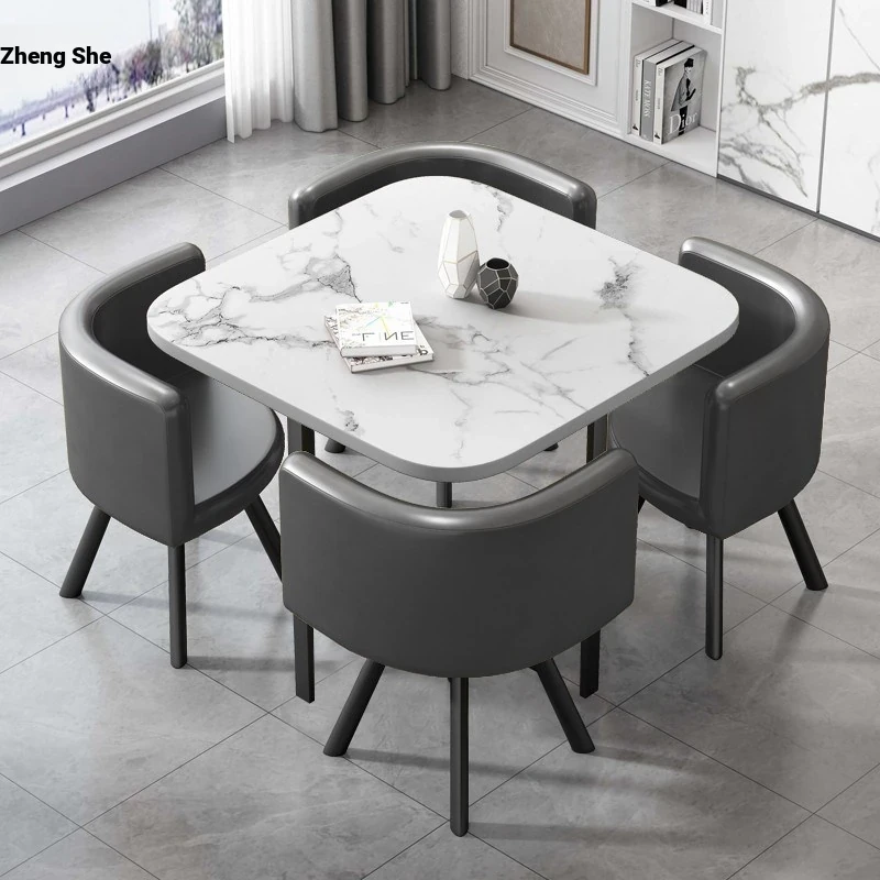 Grey square + gray leather chair 1 table 4 chairs 90*90*75