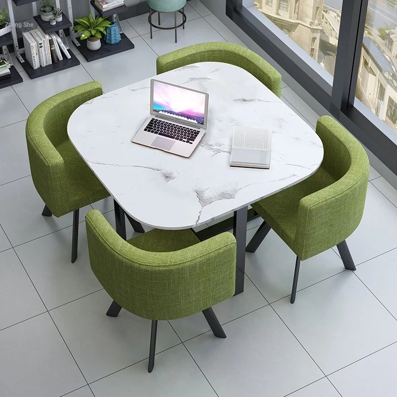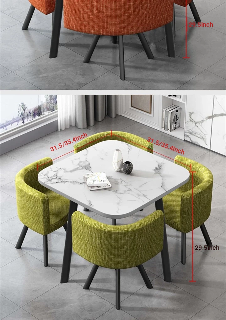 Imitation stone white square + green cloth chair 1 table 4 chairs 90*90*75