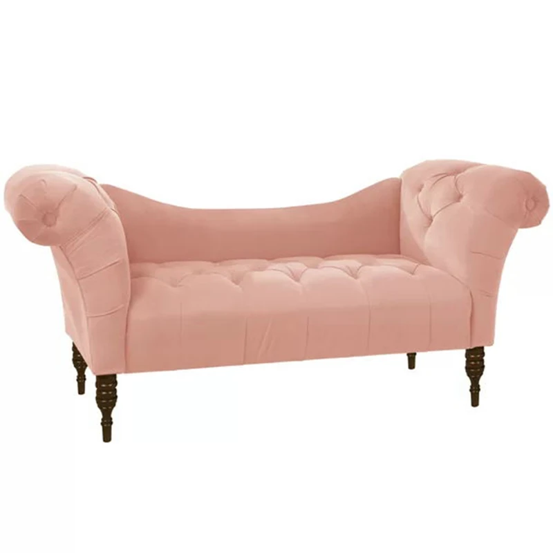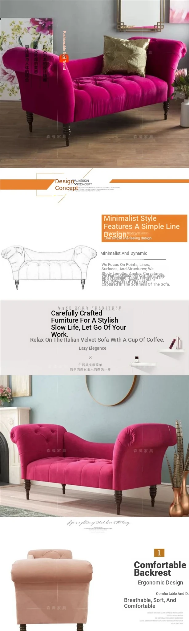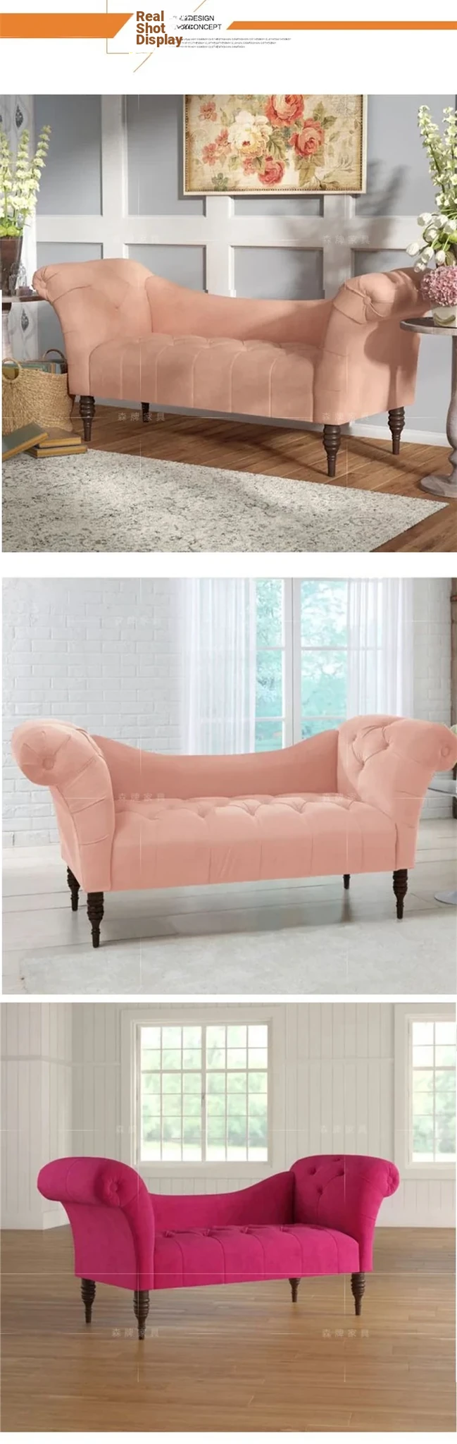 Stylish American Minimalist Pink Fabric Chaise Lounge - Single Sofa Bedside Chair for Bedroom, Perfect for Relaxation and Decor