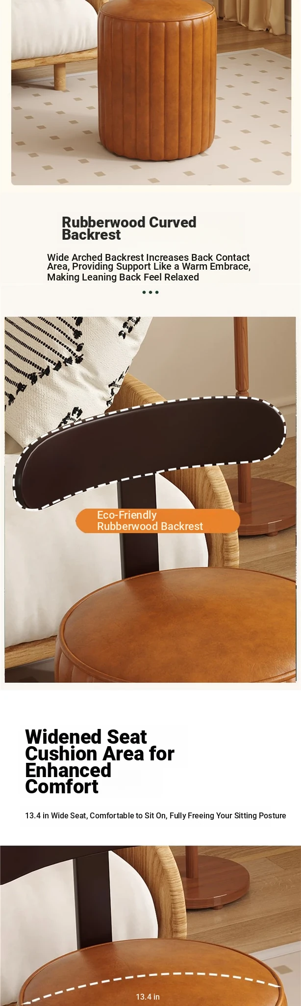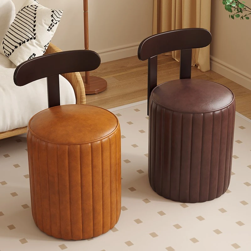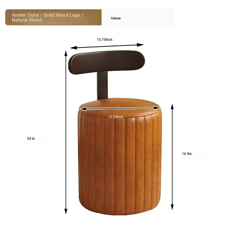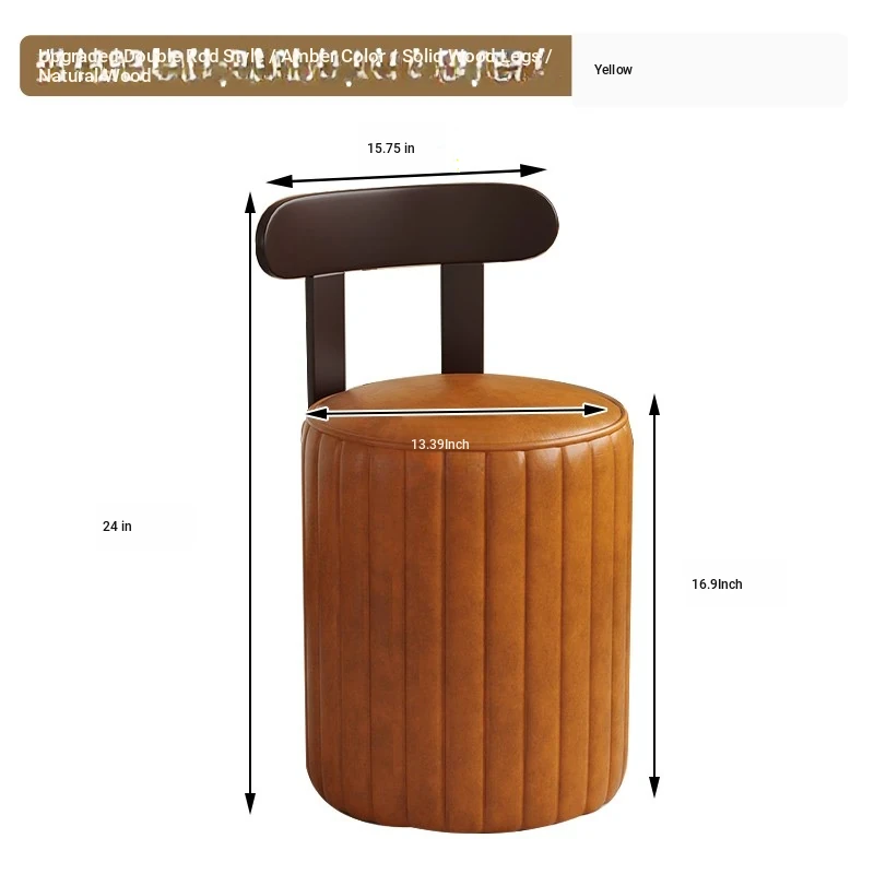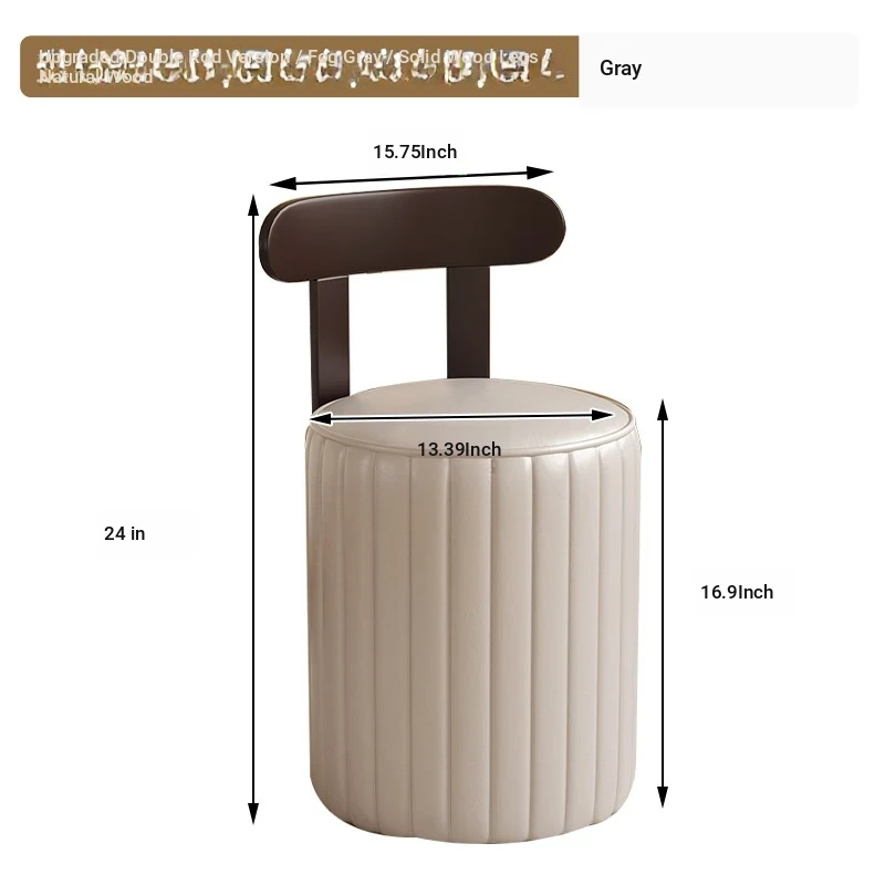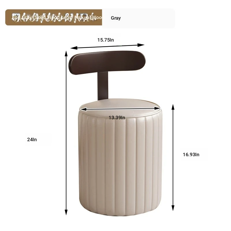 Stylish Makeup Chair for Home - Minimalist Backrest Design, Solid Wood Vanity Stool for Elegant Girls' Bedrooms, Perfect for Dressing Tables and Nail Art.