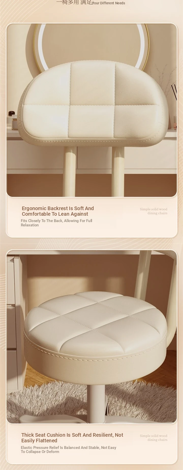 Stylish Makeup Chair for Home - Simple Backrest Office Chair for Girls, Perfect for Bedroom Vanity, Study Desk, or Student Dorm Room - Comfortable and Chic Design