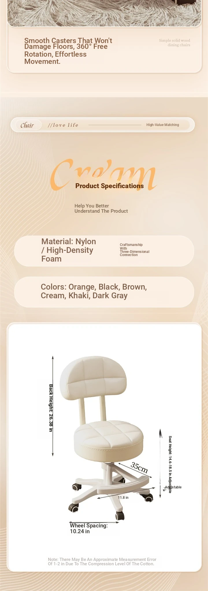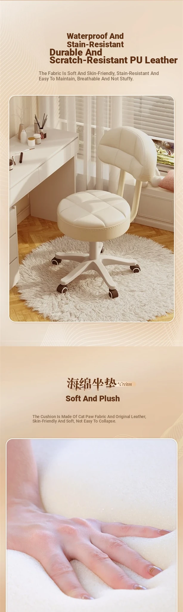 Creamy-white [Abrasion Resistant scratch resistant PU skin + thickened sponge