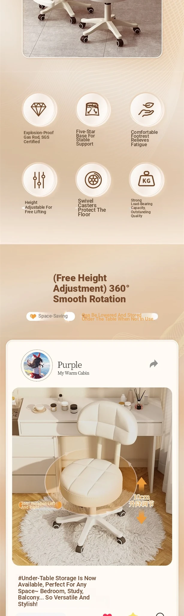 Pedal style⭐Creamy-white [height adjustable pedal +