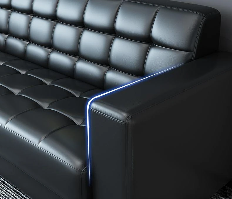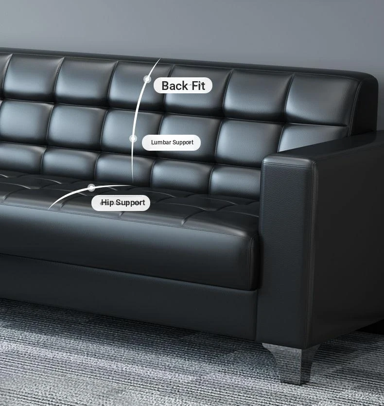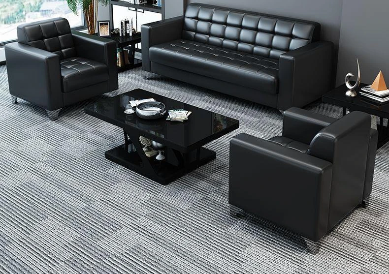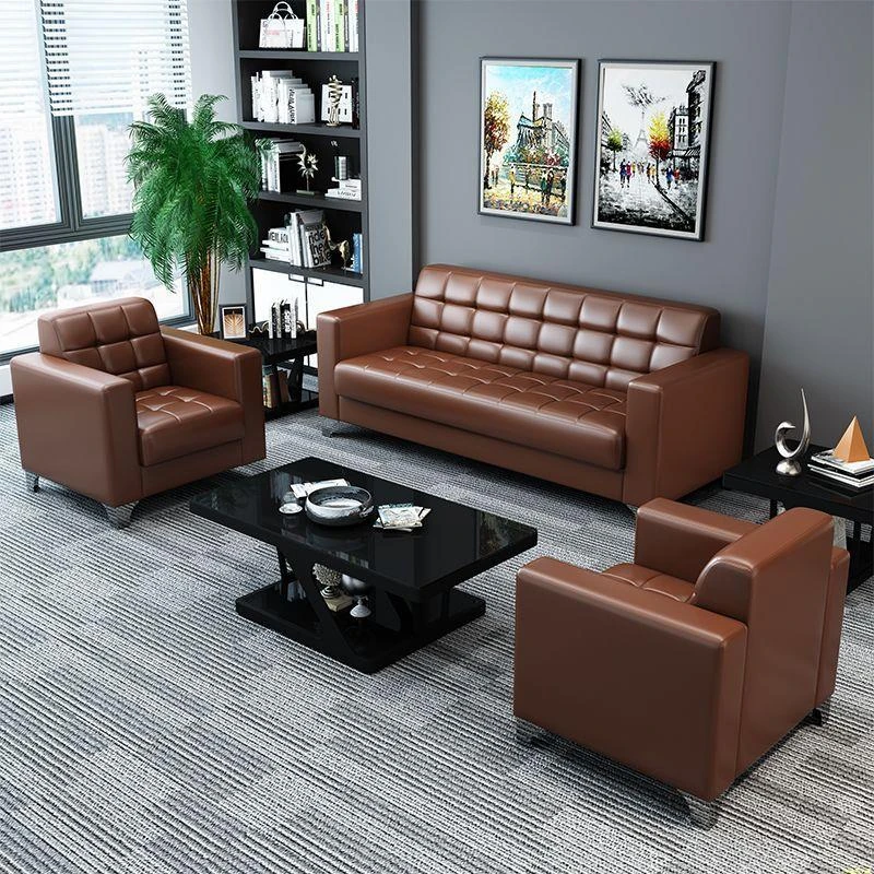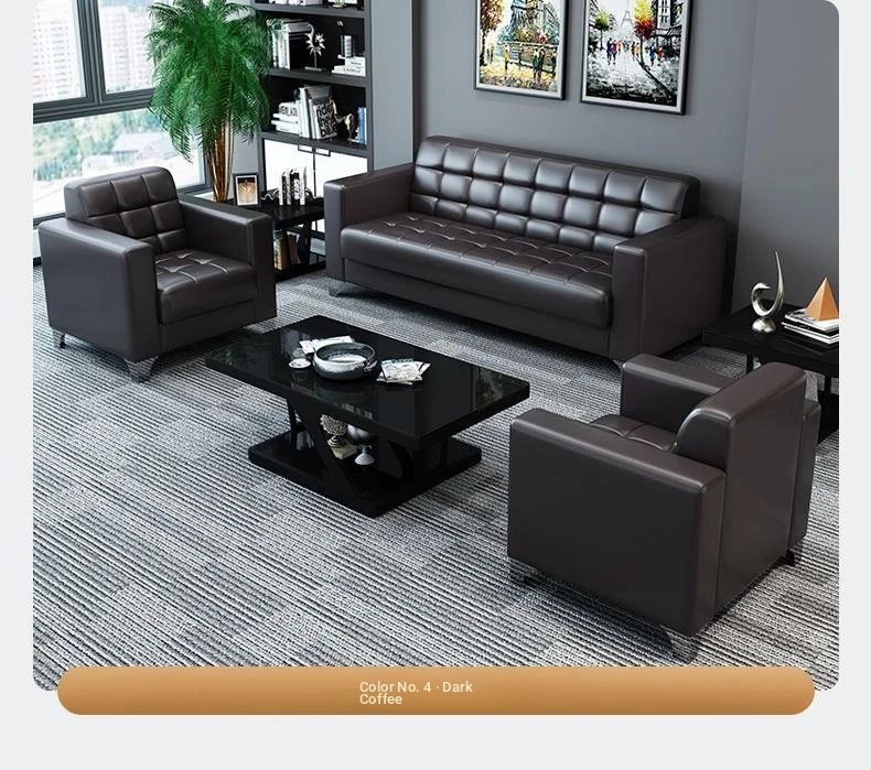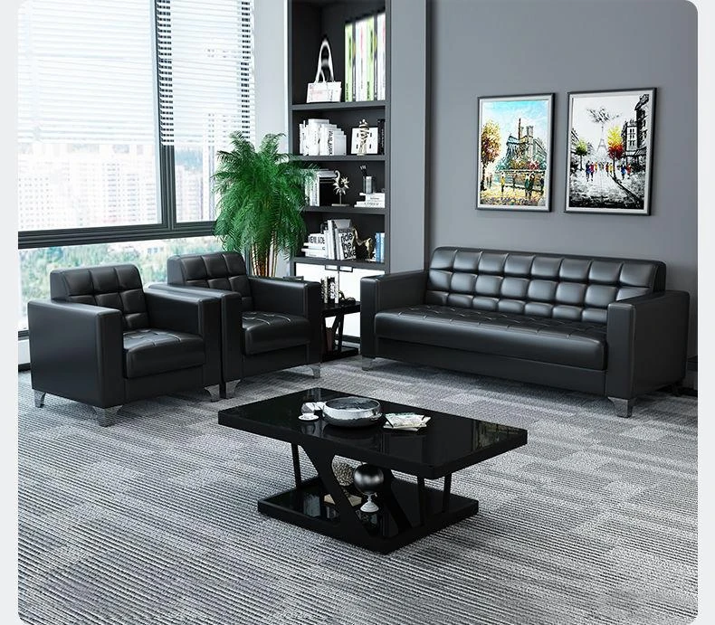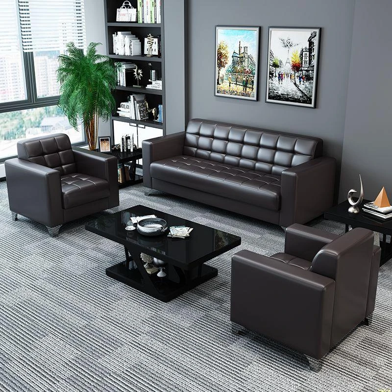 Stylish Modern Three-Seater Office Sofa with Minimalist Design - Perfect for Business Meetings and Reception Areas, Accompanied by a Chic Coffee Table. Ideal for Small Spaces!