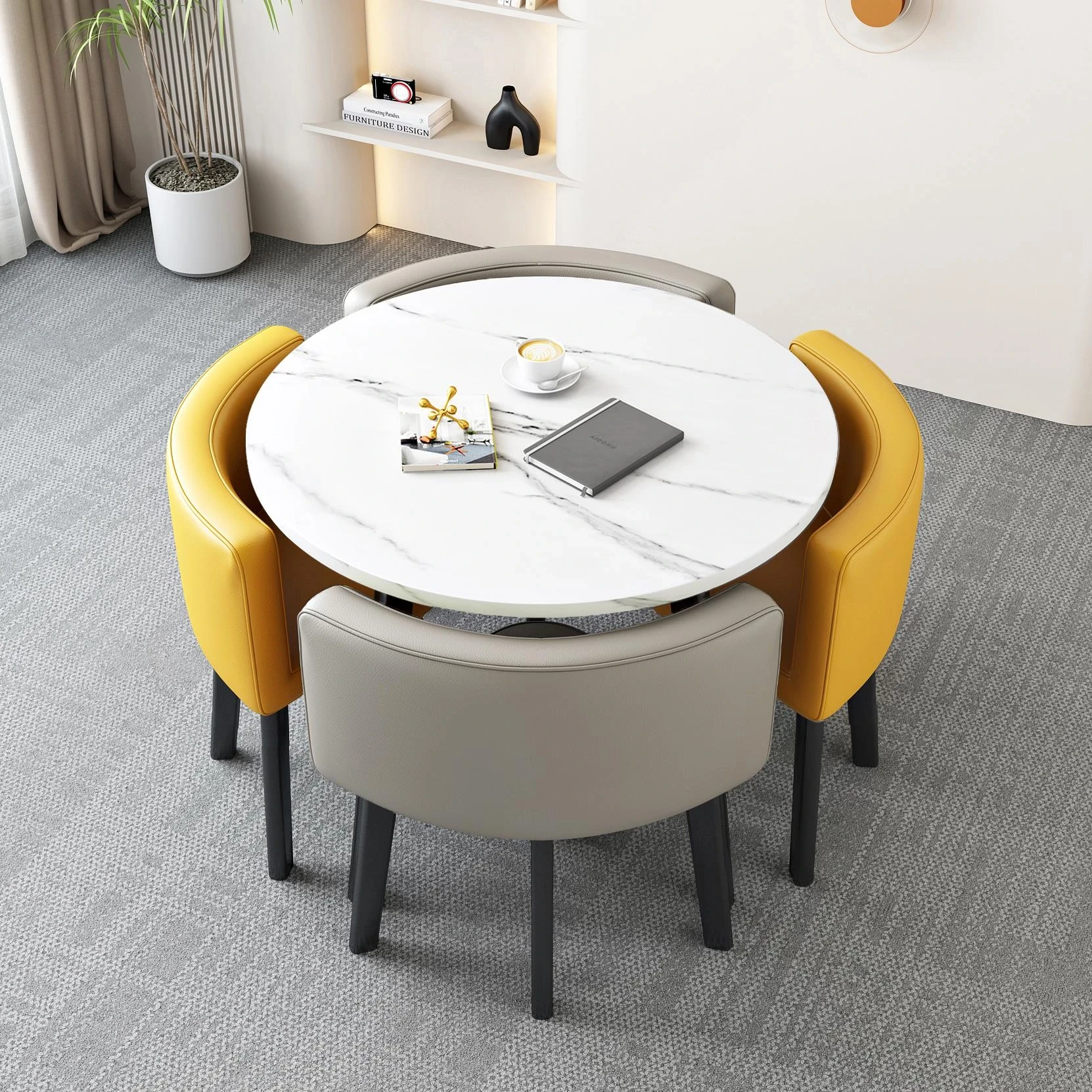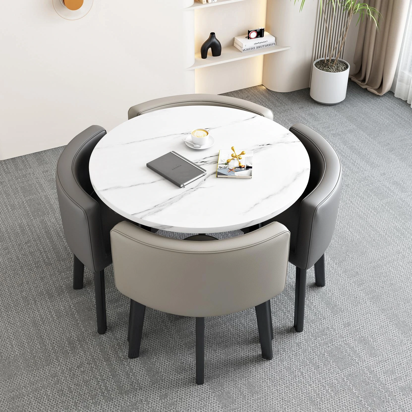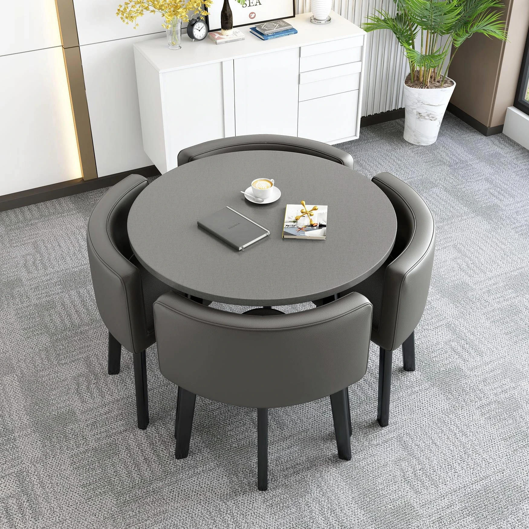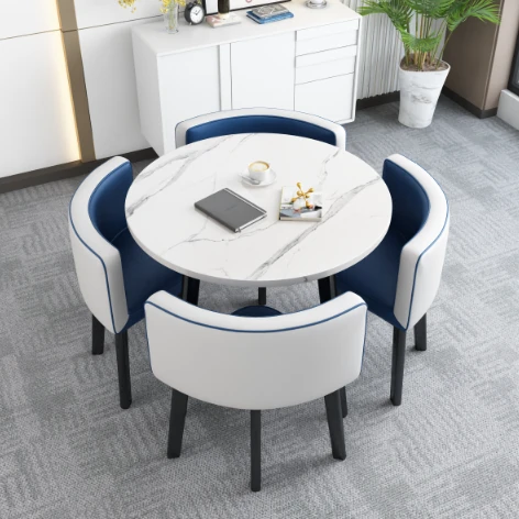 Stylish Round Meeting Table and Chair Set for Casual Discussions - Perfect for Apartments, Small Dining Areas, and Milk Tea Shops. Ideal for Reception Areas and Cozy Lounges.