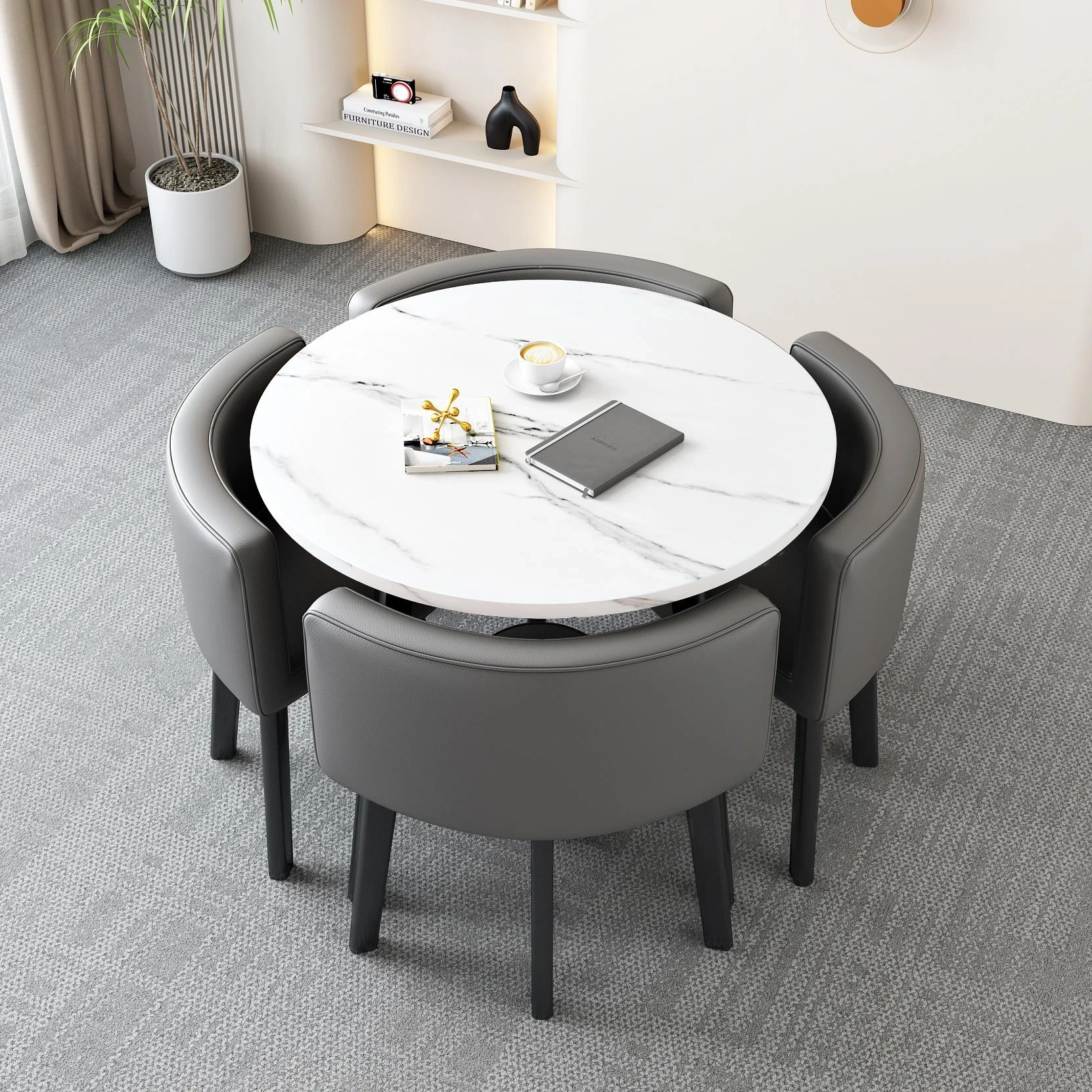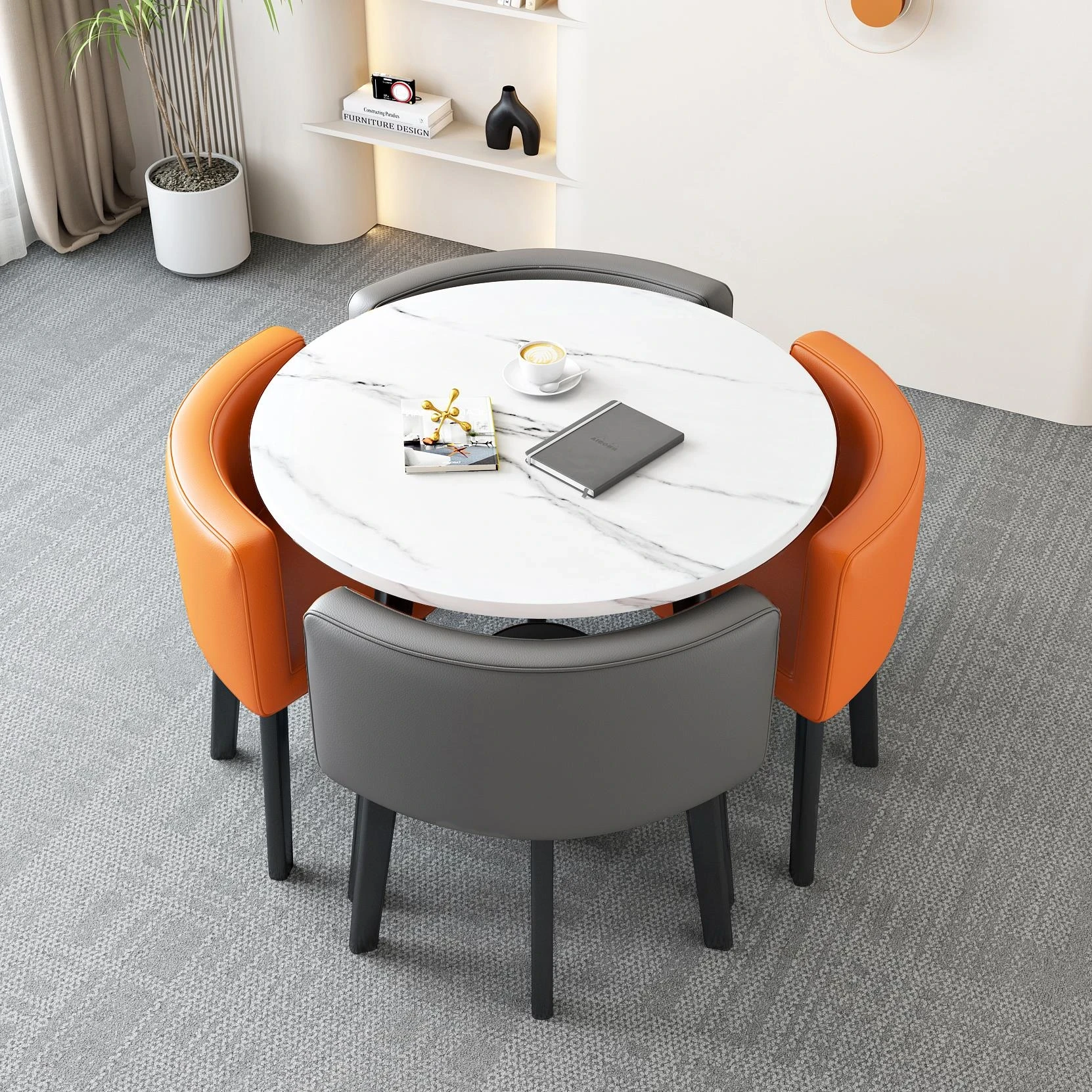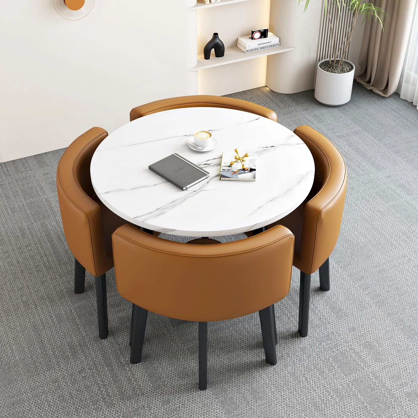 Stylish Round Meeting Table and Chair Set for Casual Discussions - Perfect for Apartments, Small Dining Areas, and Milk Tea Shops. Ideal for Reception Areas and Cozy Lounges.