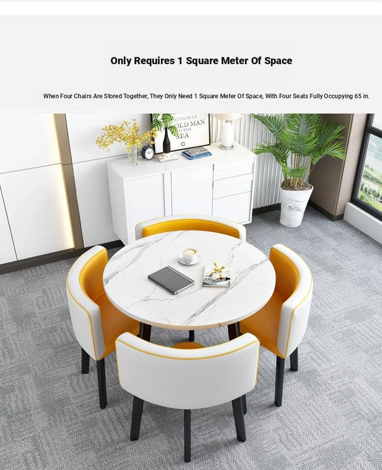Shuiqu round table + yellow and white leather chair 1 table 4 chairs