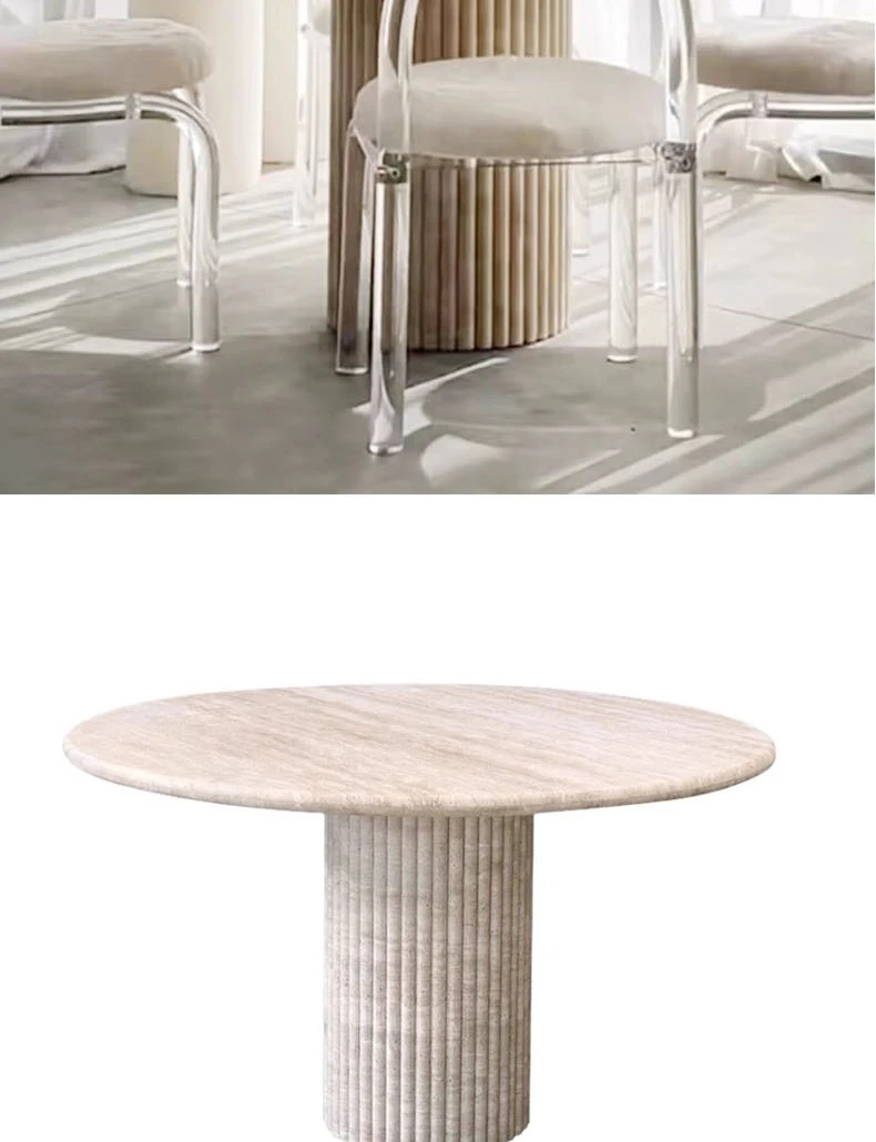 Wabi-Sabi Inspired Natural Marble Imported Stone Dining Table - Designer High-End Aesthetic for Living Rooms, Hotels, and Villas