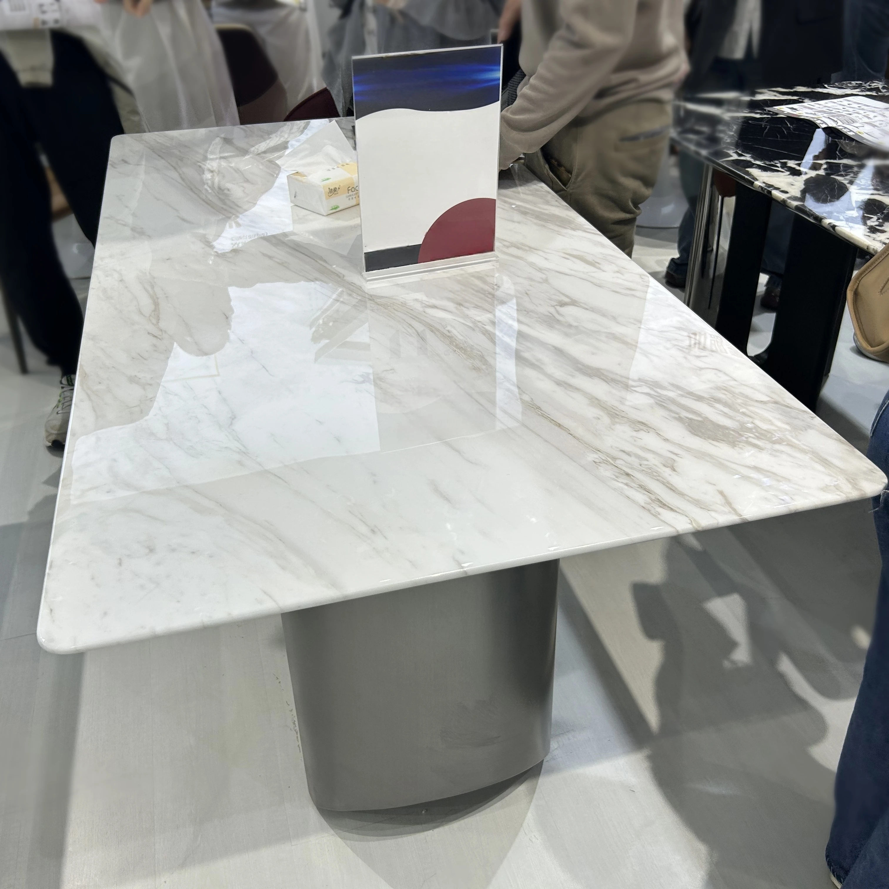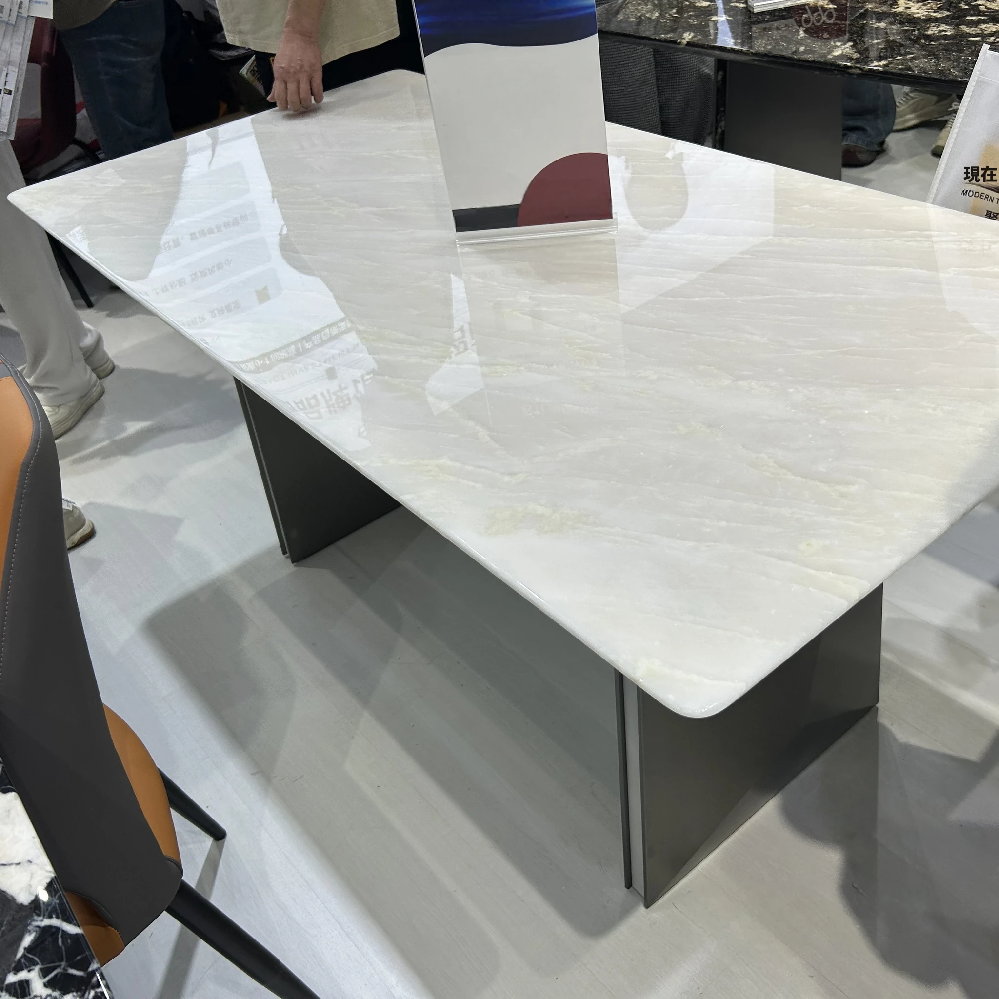 侘寂風の天然大理石輸入洞石ダイニングテーブル - デザイナーズ感溢れる高級感、リビングやホテル、別荘に最適な展示台面!