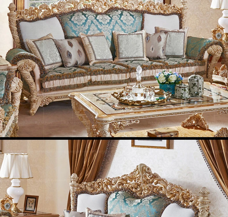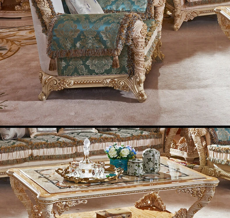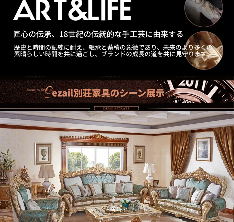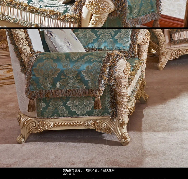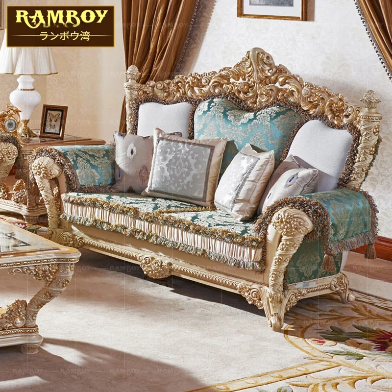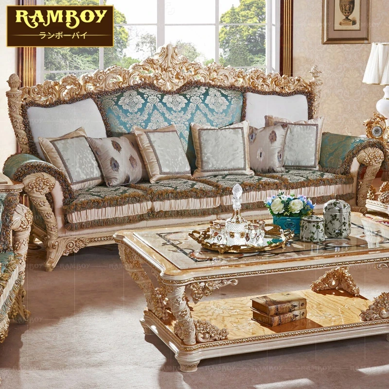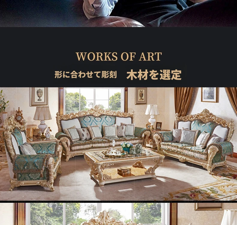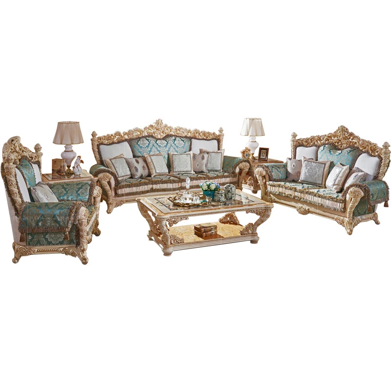 2023年新作!高級感あふれる欧風フレンチスタイルの彫刻入りファブリックソファセット。豪華な木製デザインで、ヴィラのリビングルームにぴったりの家具です。心地よさとエレガンスを兼ね備えた一品!