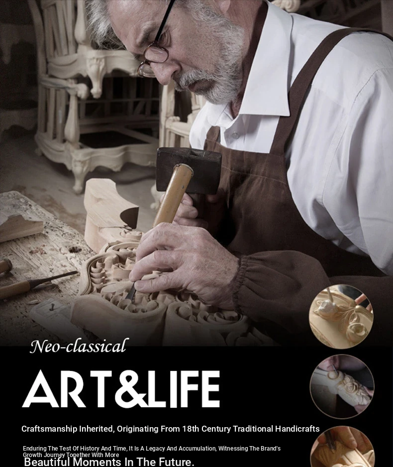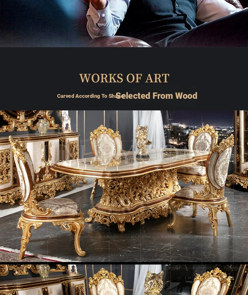 2023 New Luxury European Style Solid Wood Carved French Long Dining Table and Chair Set for Villa - Elegant Courtly Design