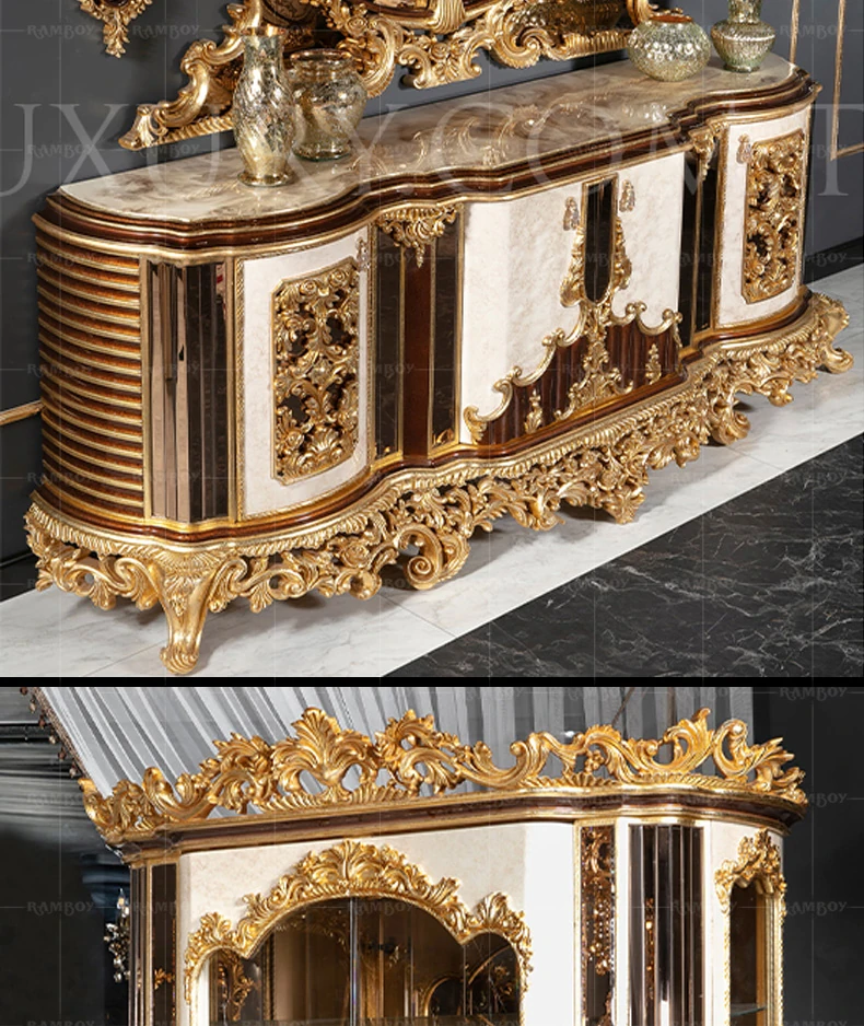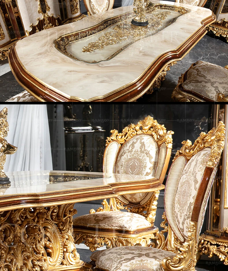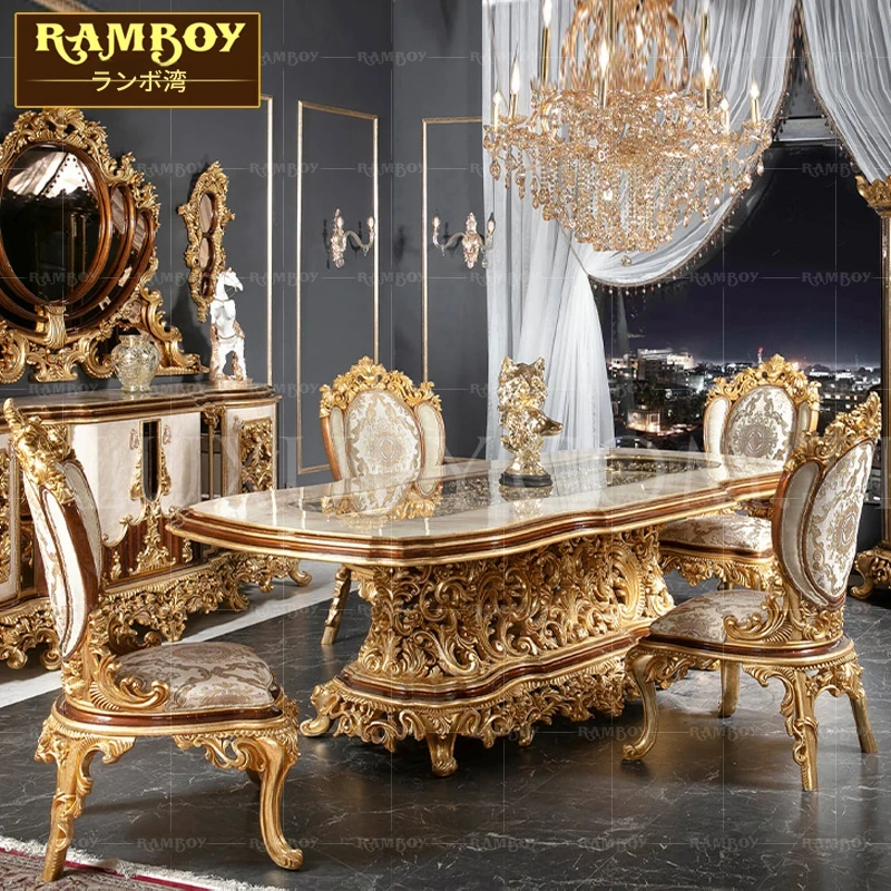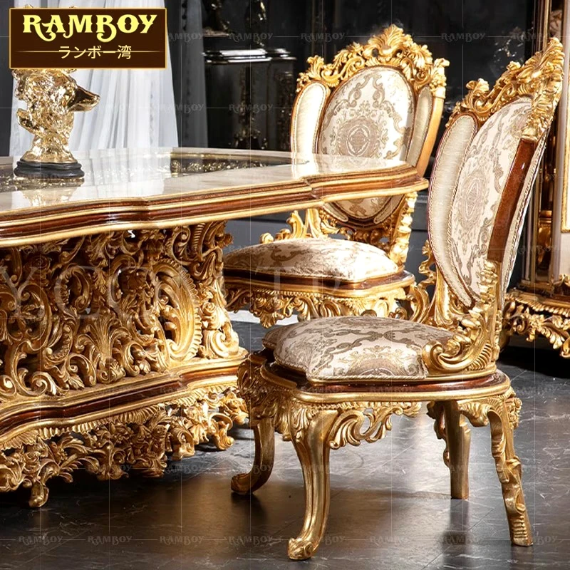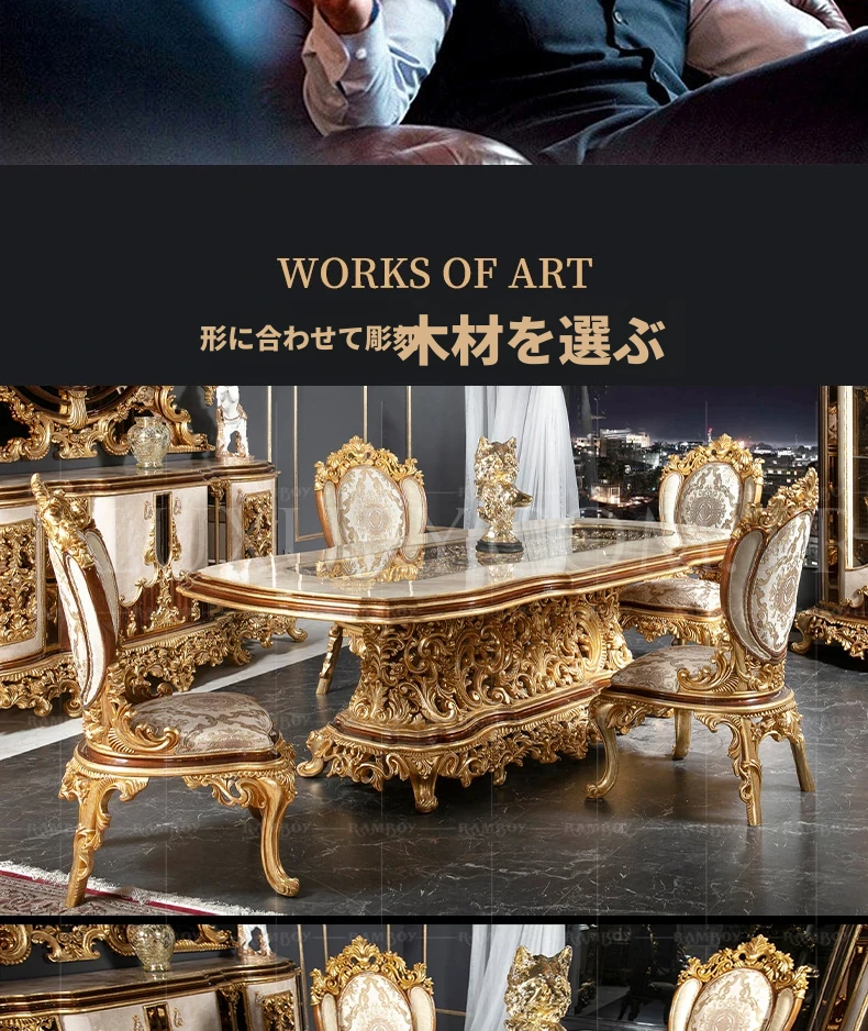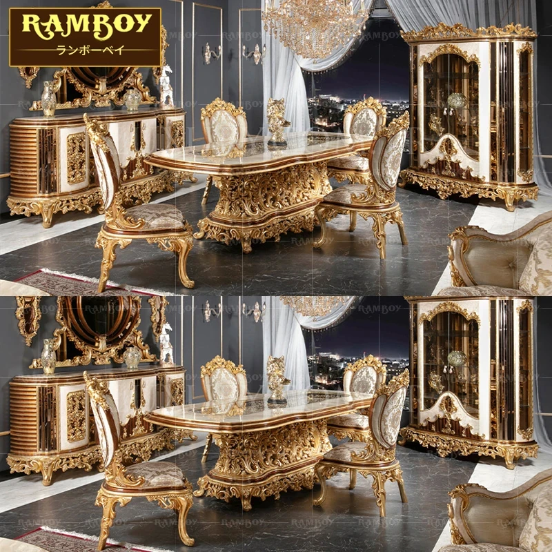 2023年新作!高級感溢れる欧式豪華実木彫刻フレンチスタイル長テーブル&チェアセット - 別荘や宮廷にぴったりのエレガントなダイニング体験を!