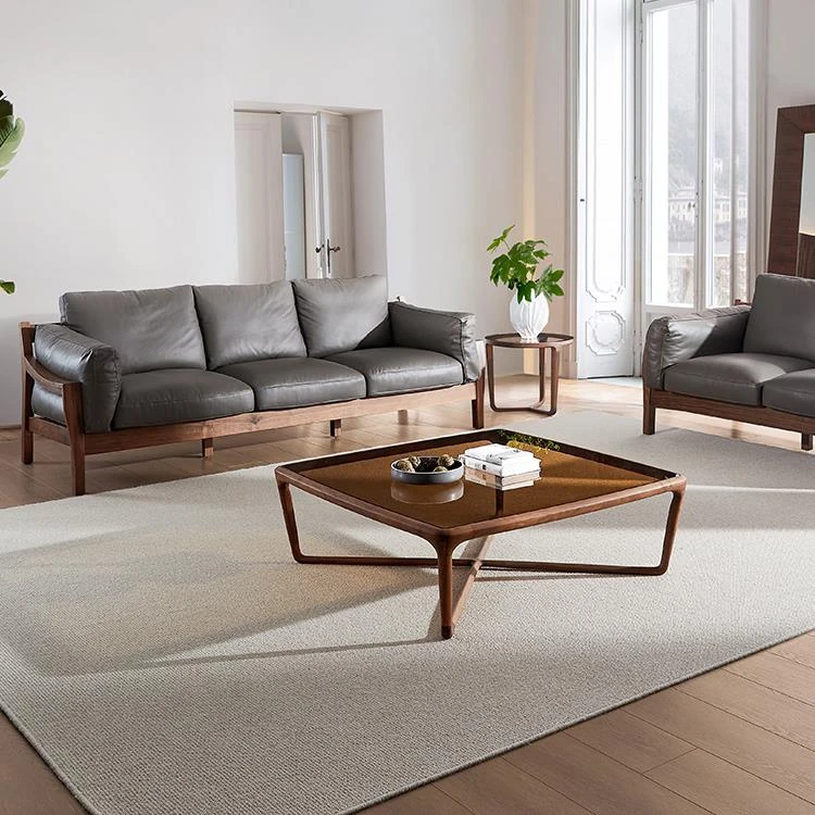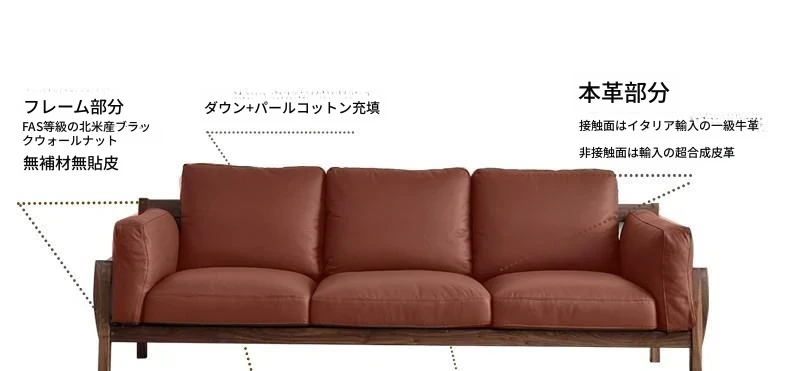 北米産ブラックウォールナット使用!全実木製イタリアンラグジュアリーソファ!デザイナーによる洗練されたデザイン、リビングルームにぴったりな本革の組み合わせソファ!高級感溢れる居心地の良い空間を演出します。