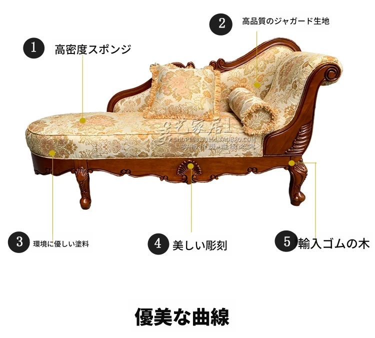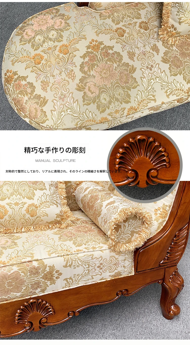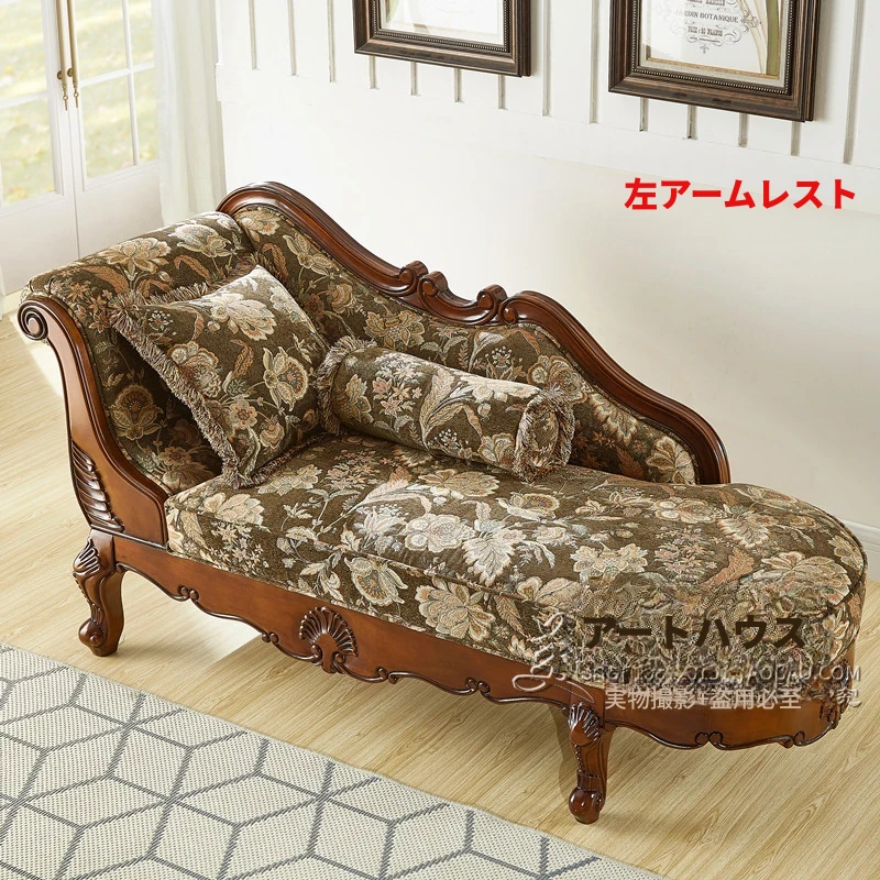 アメリカンスタイルの無垢材製カウチソファ!リビングや寝室にぴったりの布張りラウンジチェア。リラックスできる美しいデザインで、優雅なひとときをお楽しみください。エレガントな欧風カウチで、あなたの部屋を格上げ!