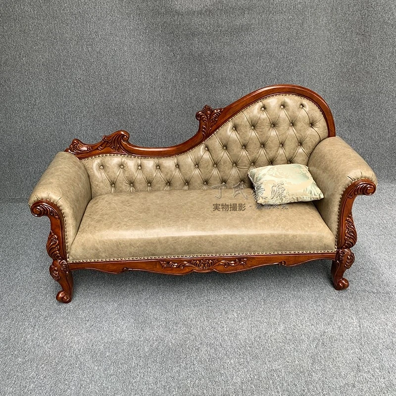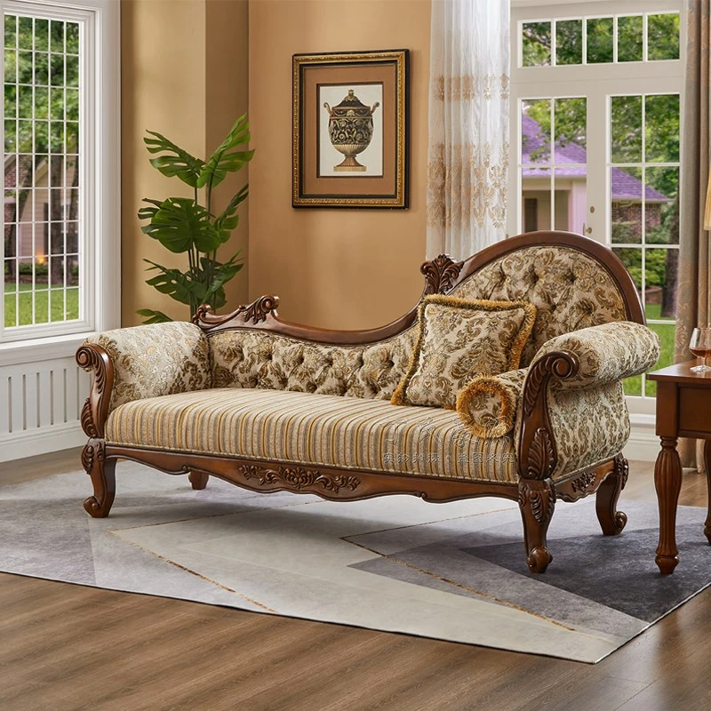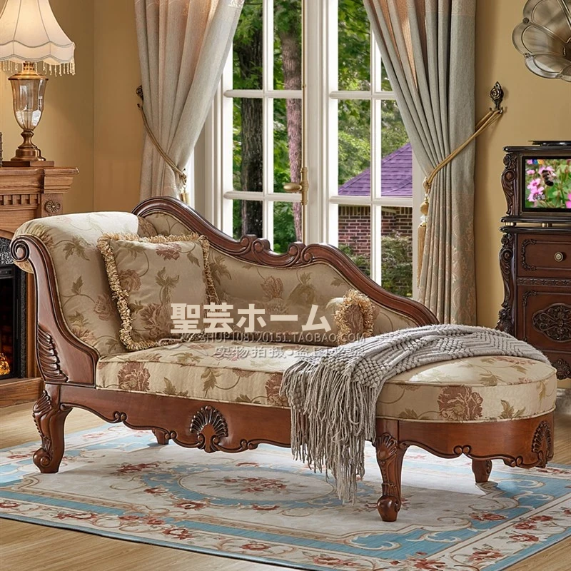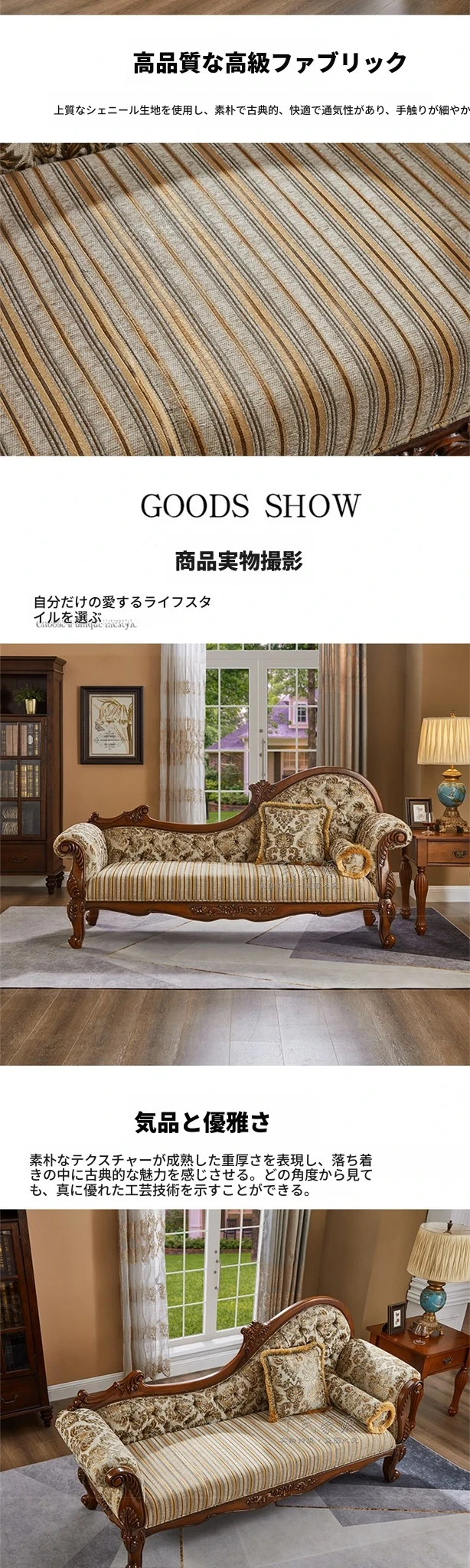 アメリカンスタイルの無垢材製カウチソファ|リビングやバルコニーに最適なくつろぎの太妃椅子|寝室にもぴったりなエレガントな欧風デザイン|贅沢なリラックスタイムをお届けします!