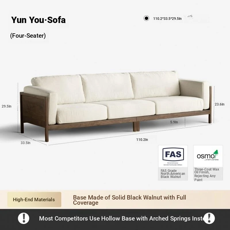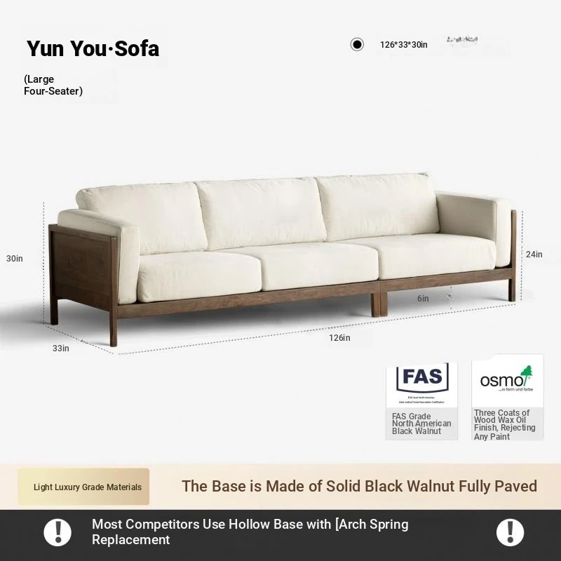 Black walnut four Long sofa 125.98in*33.46in*29.53in (arch spring)