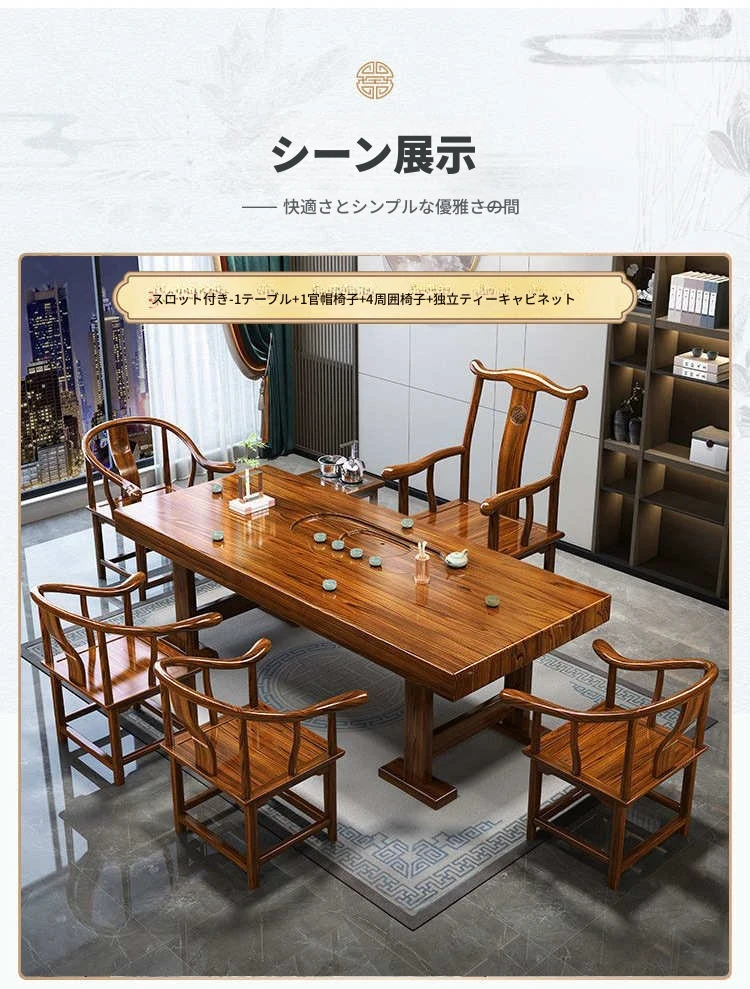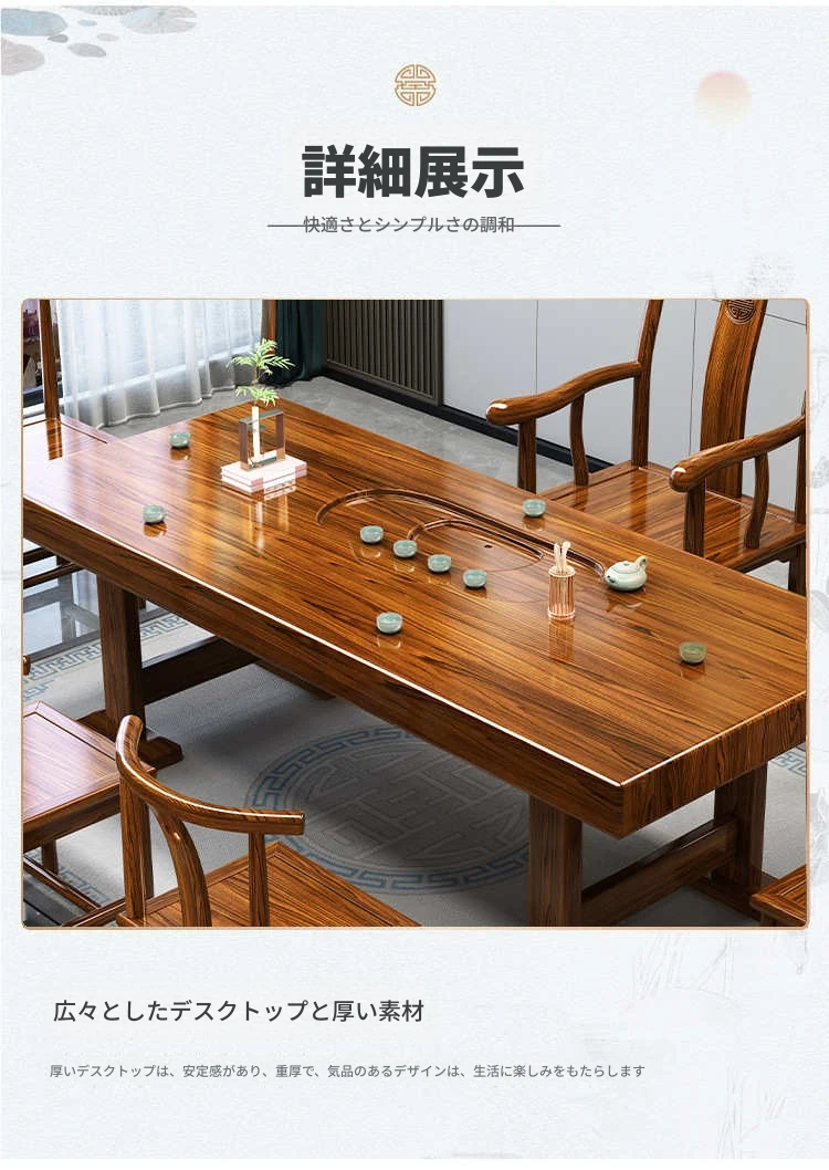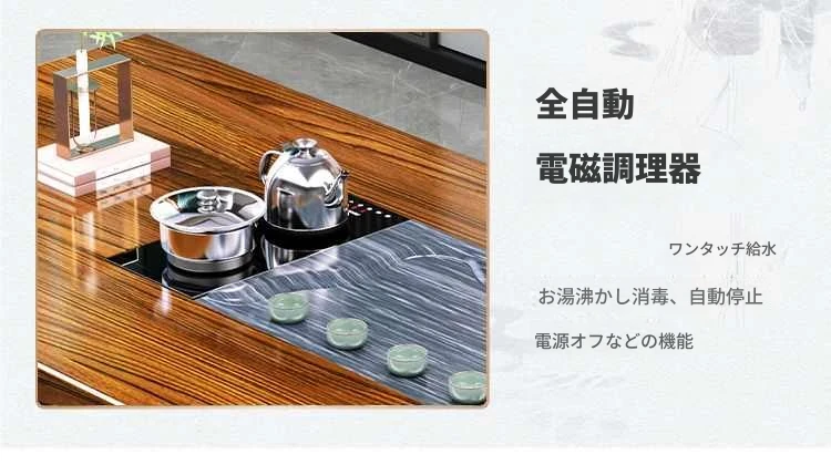 全木製中式茶卓セット - リラックスした雰囲気で楽しむ!おしゃれなリビングやオフィスにぴったりの茶器一体型。美しいデザインと機能性を兼ね備え、心地よいティータイムをお届けします。