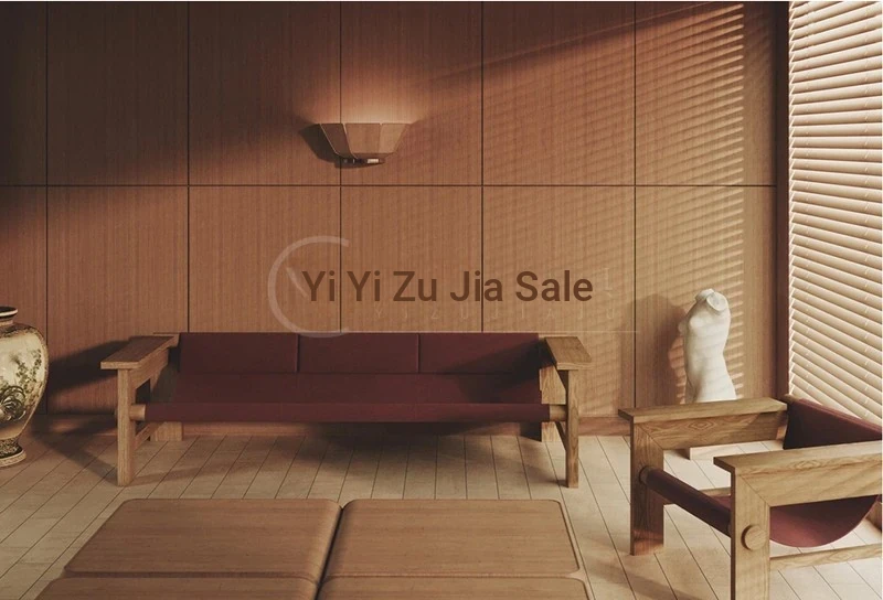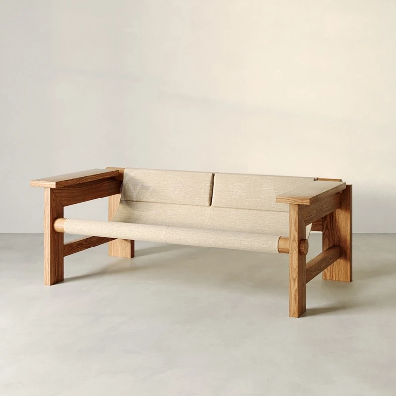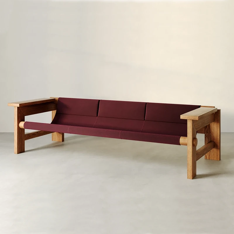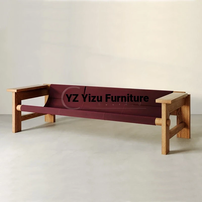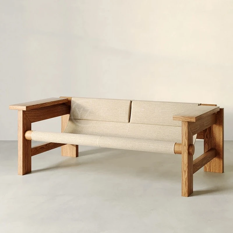 Designer Creative Solid Wood Double Three-Seater Vintage Sofa - Perfect for Small Living Rooms, Leather Armchair for Hotels and Clubs, Stylish Furniture Solution