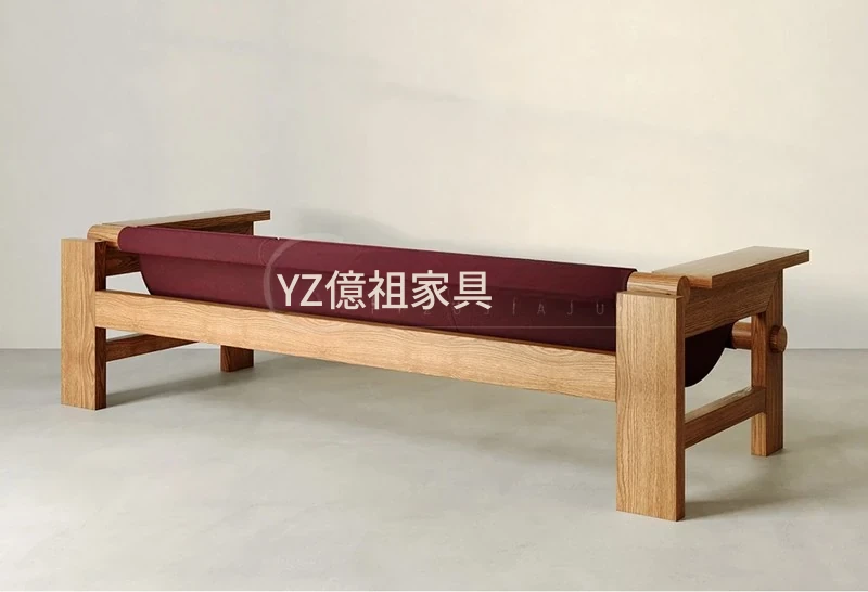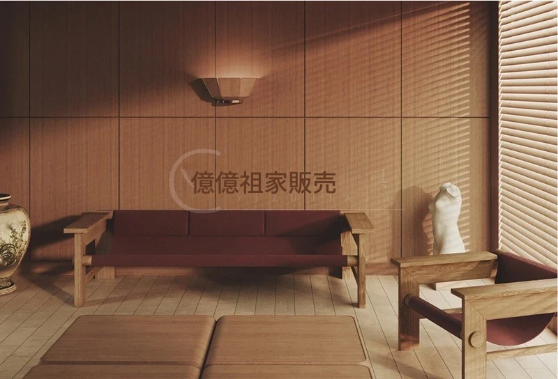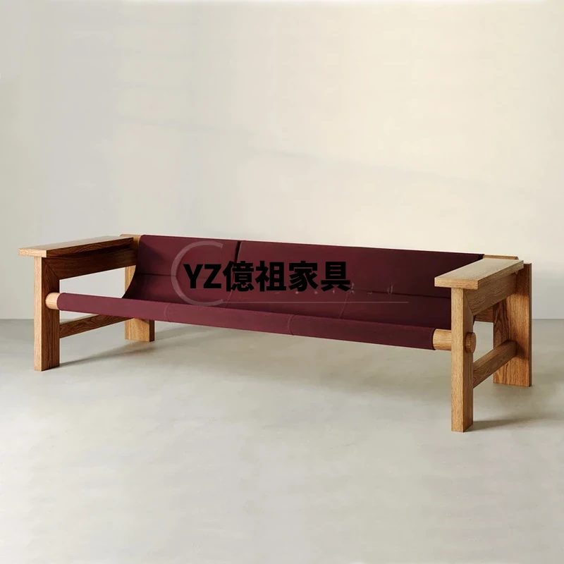 デザイナーのクリエイティブな無垢材ダブルソファ、コンパクトなリビングに最適!おしゃれなレトロスタイルの革製ソファチェア。民宿やクラブにもぴったりな家具です。