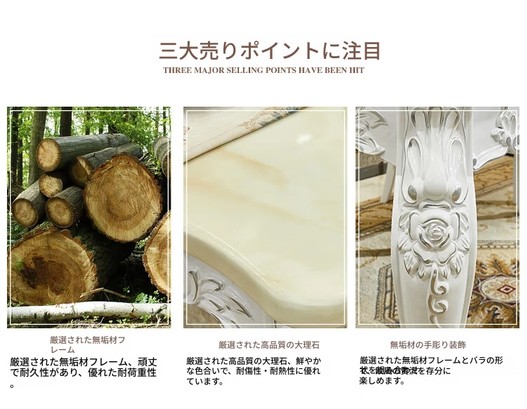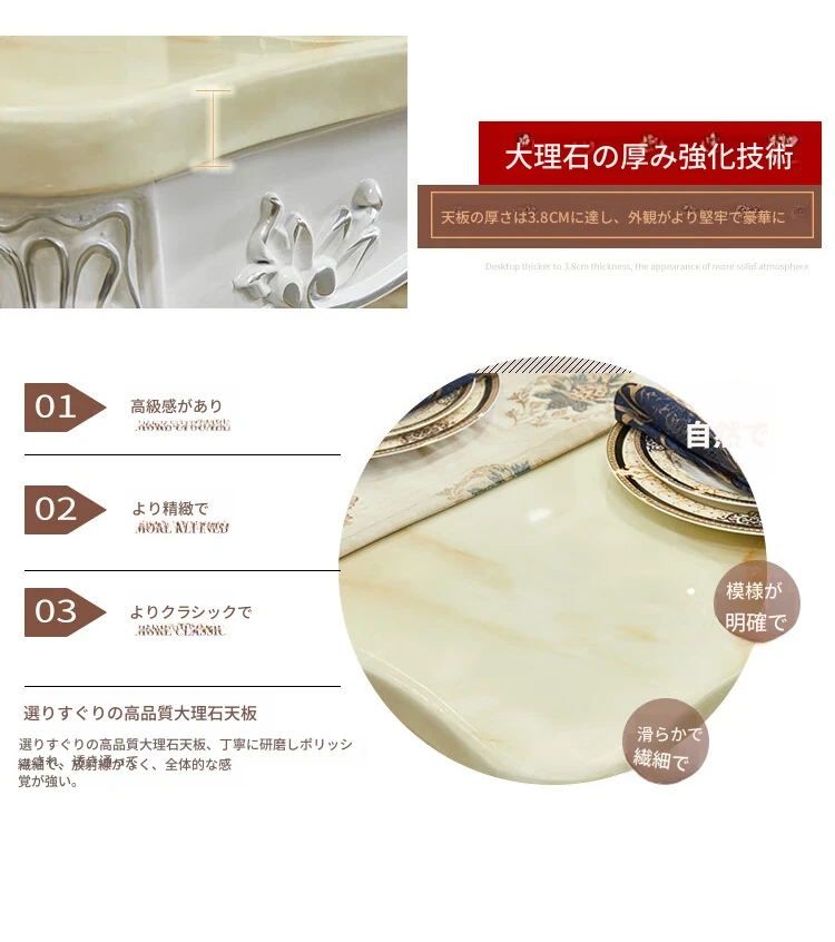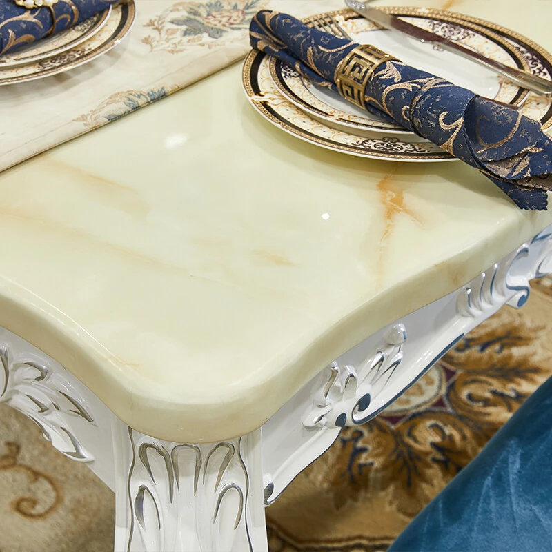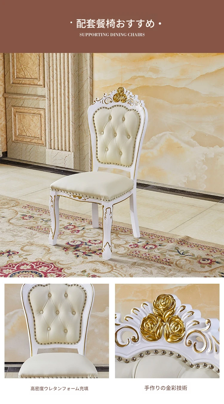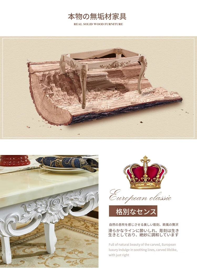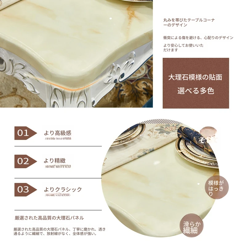 豪華な欧式全実木彫刻大理石ダイニングテーブルセット - 1テーブル6チェアまたは1テーブル4チェアの選択可能!家族や友人との特別なひとときを演出する、耐久性と美しさを兼ね備えたデザインです。