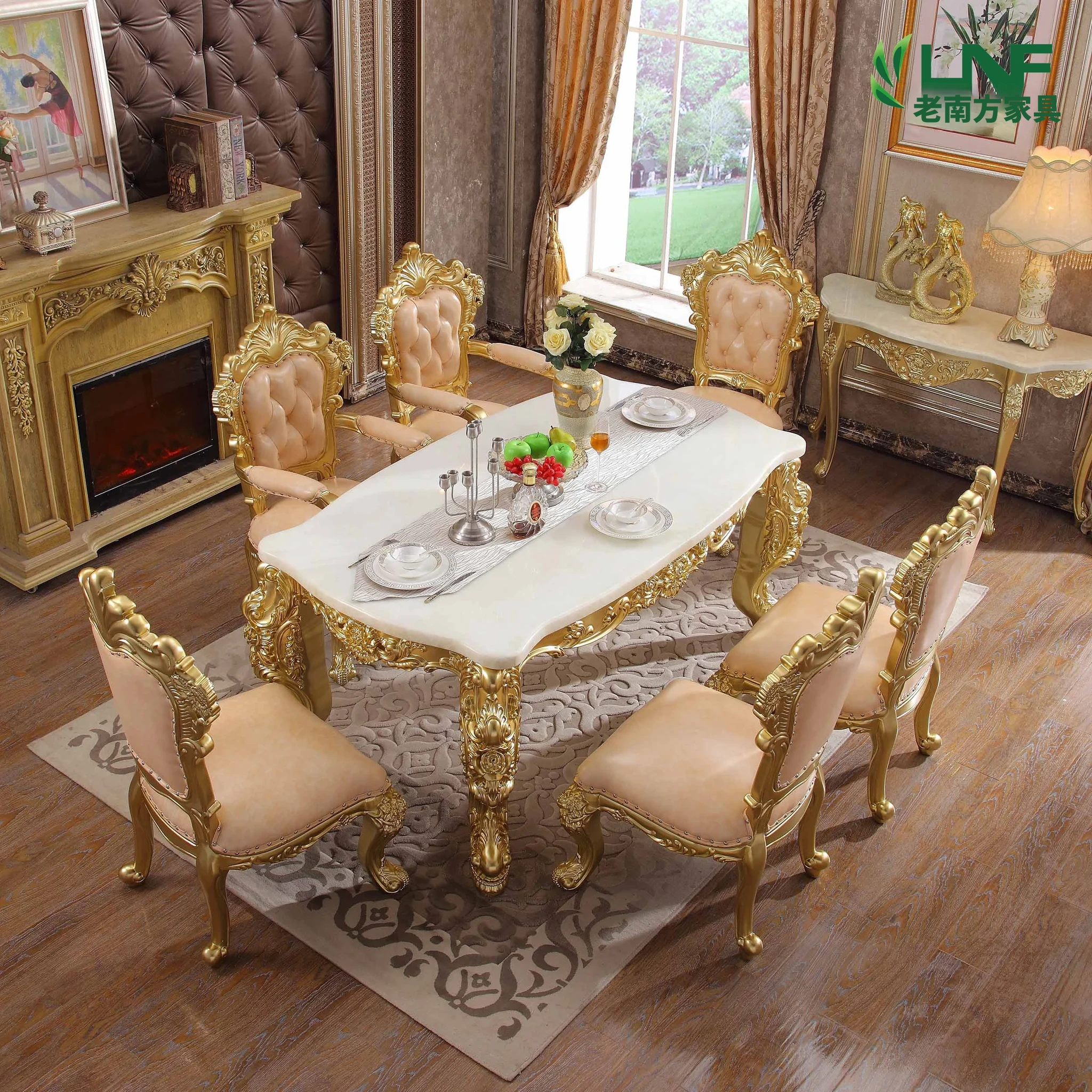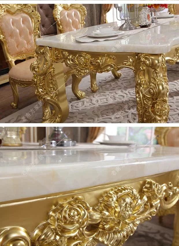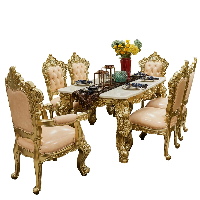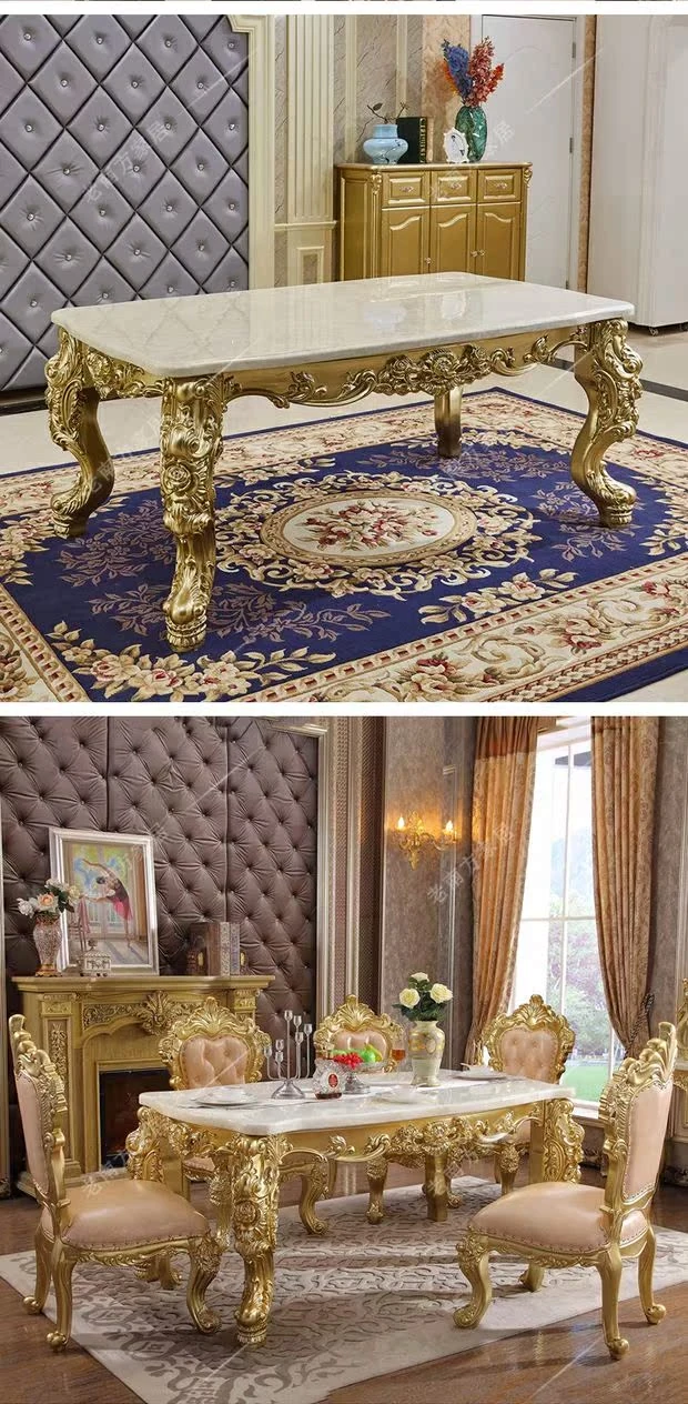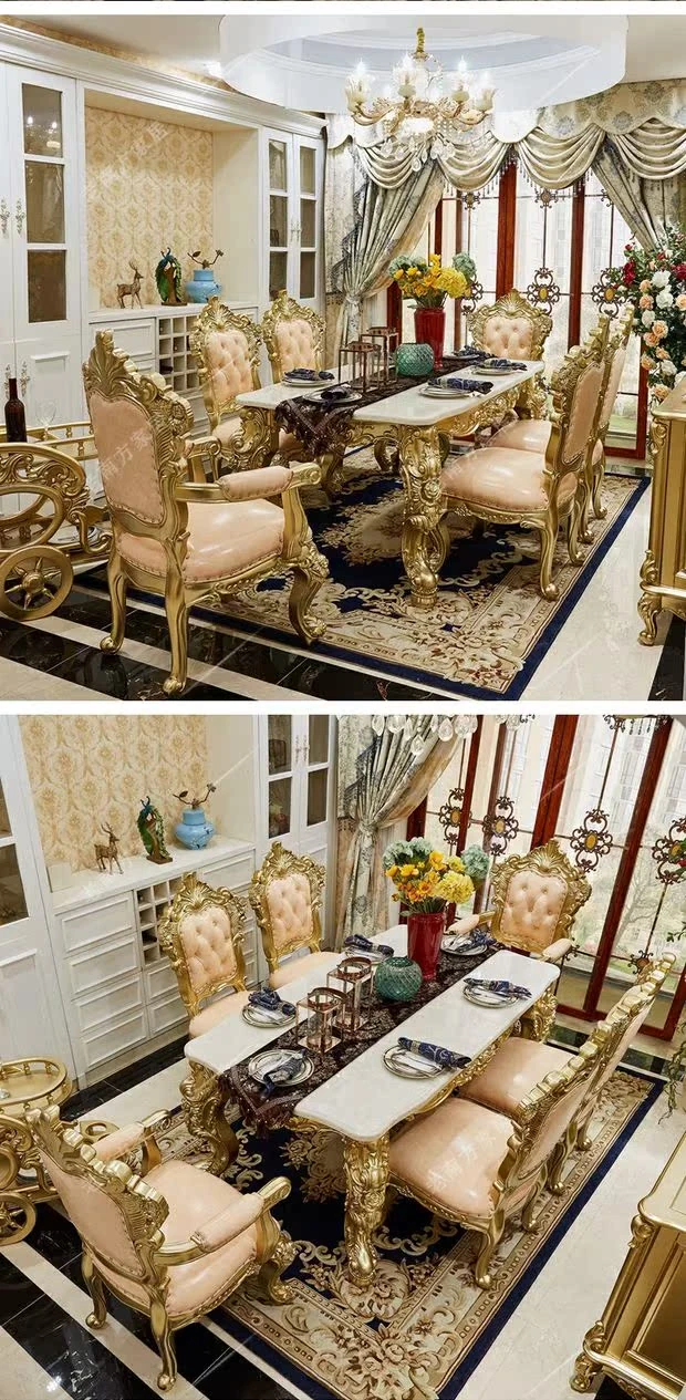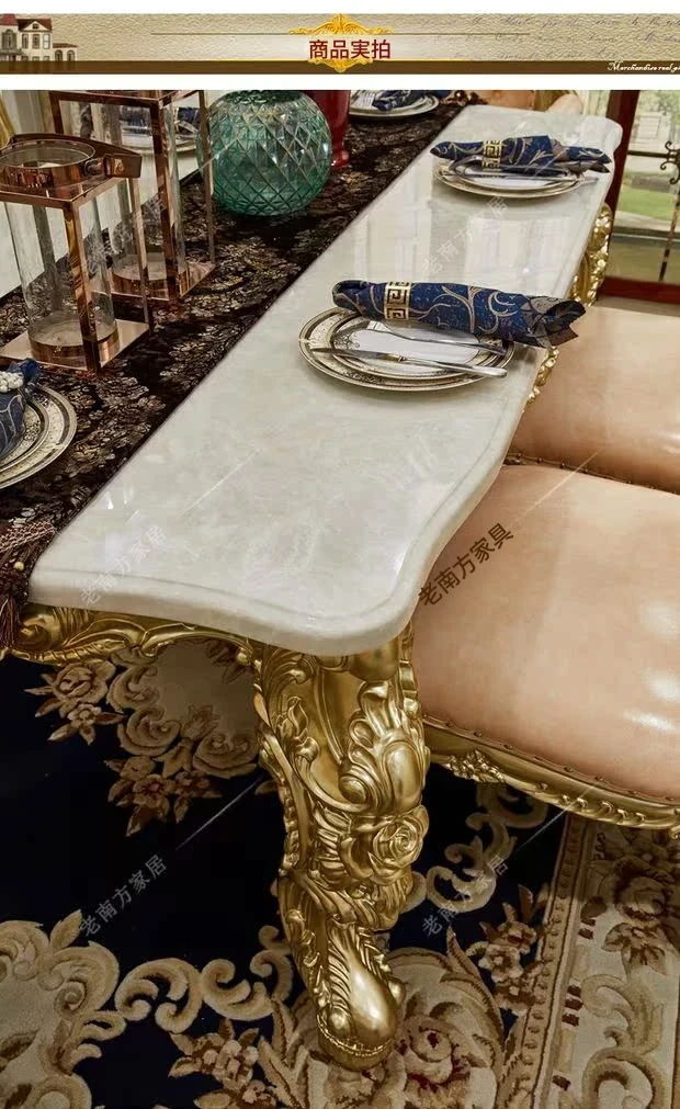 高級ヨーロピアンスタイルの実木ダイニングテーブル&チェアセット - フランス宮廷風の贅沢な長テーブル、大理石製のエレガントなバーテーブル、プレミアムレザーの椅子で、特別なひとときを演出します。