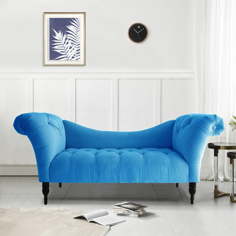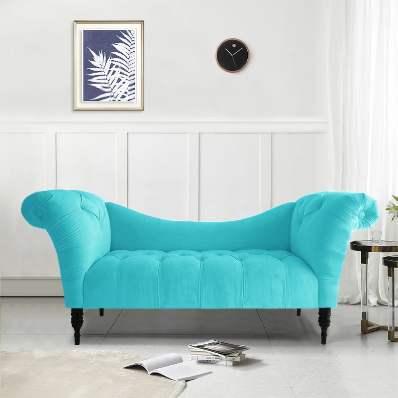 エレガントな欧風新古典布張りカウチチェア、小型リビングや寝室に最適!魅力的なデザインでリラックスできる美人ソファ、あなたの空間を華やかに彩ります。
