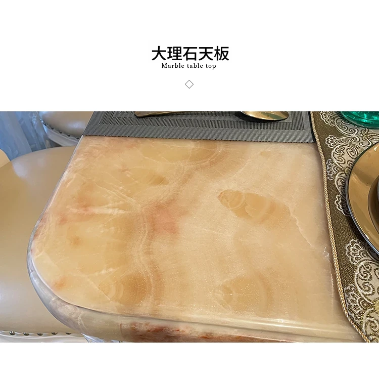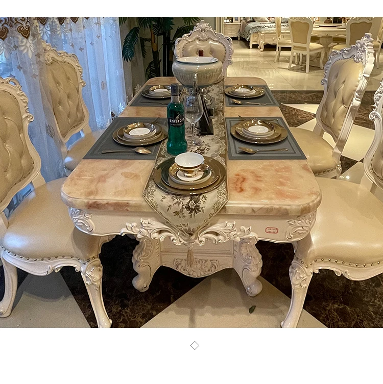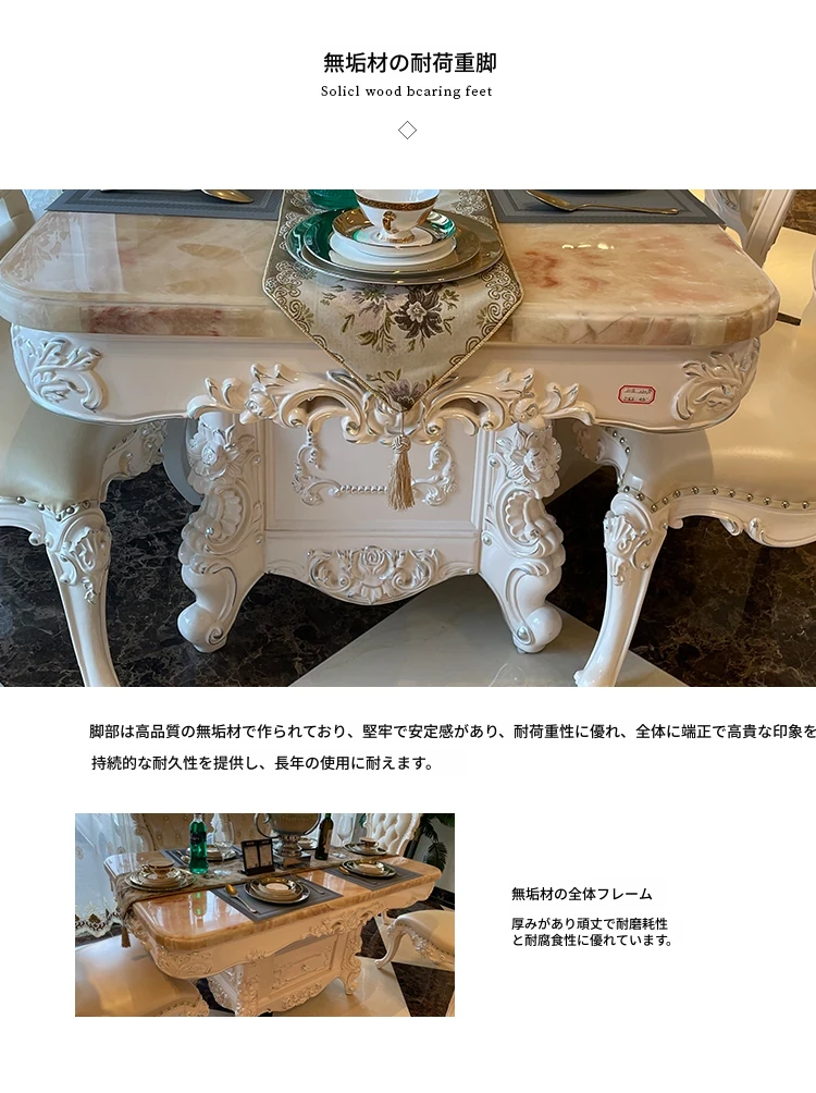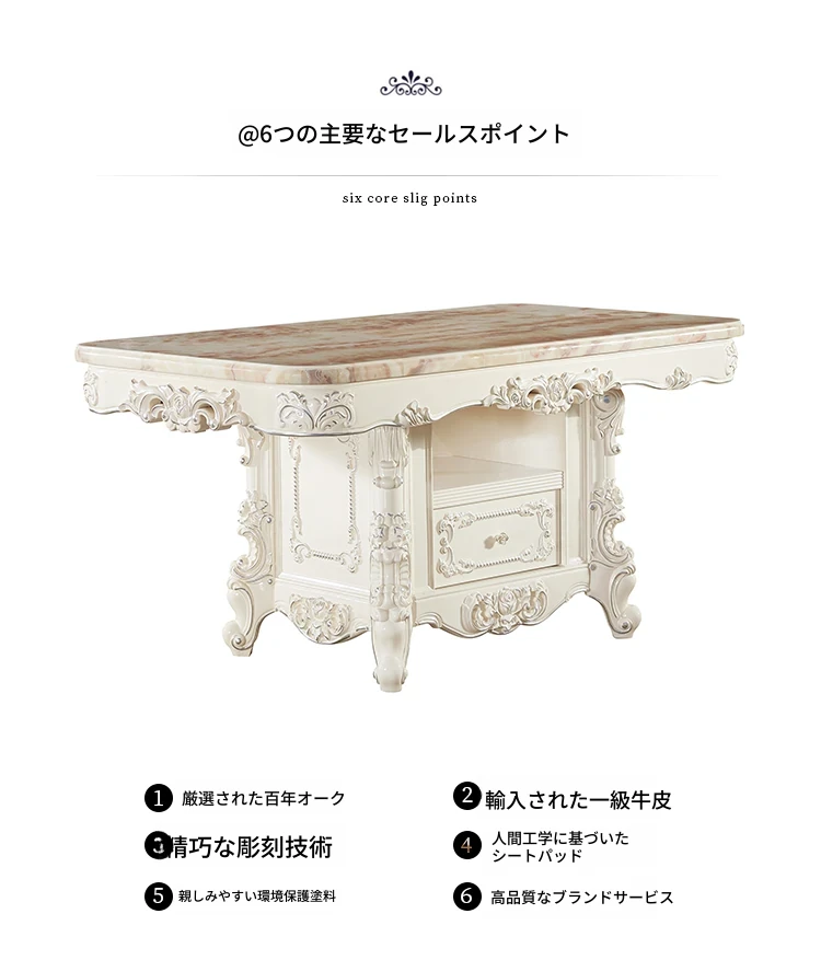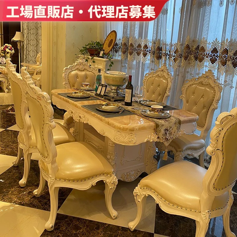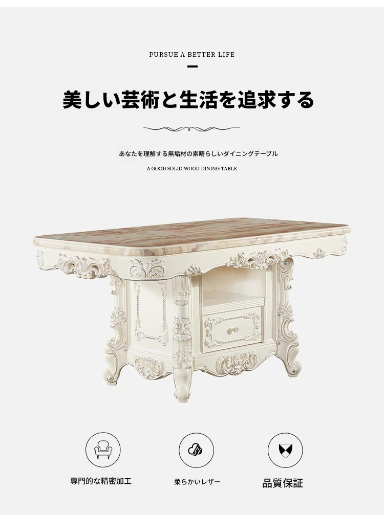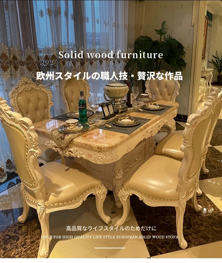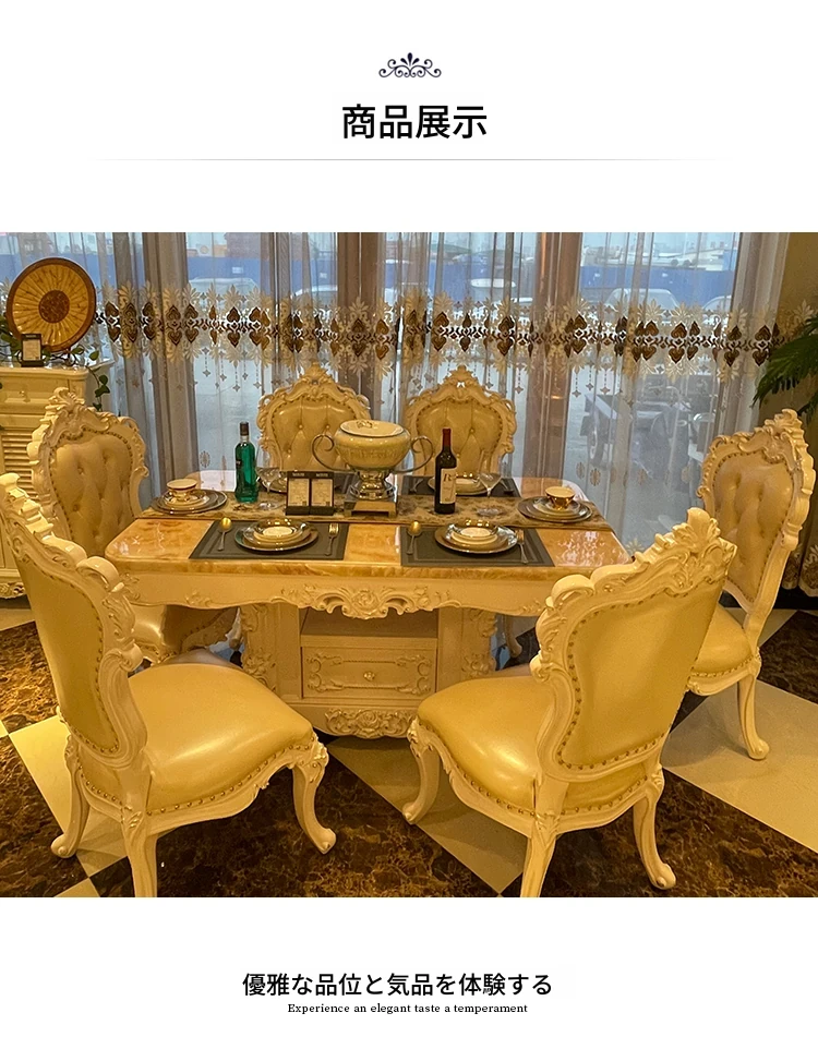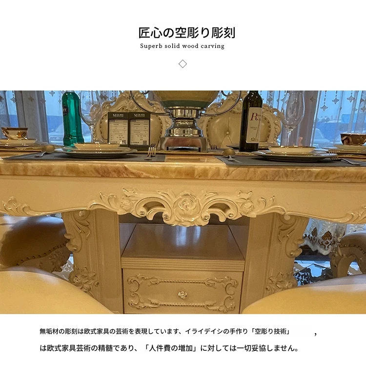 豪華な欧風大理石ダイニングテーブル - 自然木彫刻デザイン、収納機能付き!長方形で4/6人用、優雅なレストランスタイルのコンビネーション。食事の時間を特別なものに!