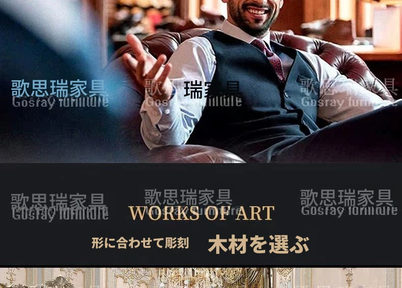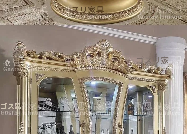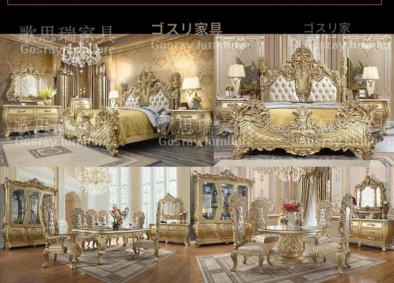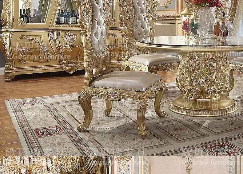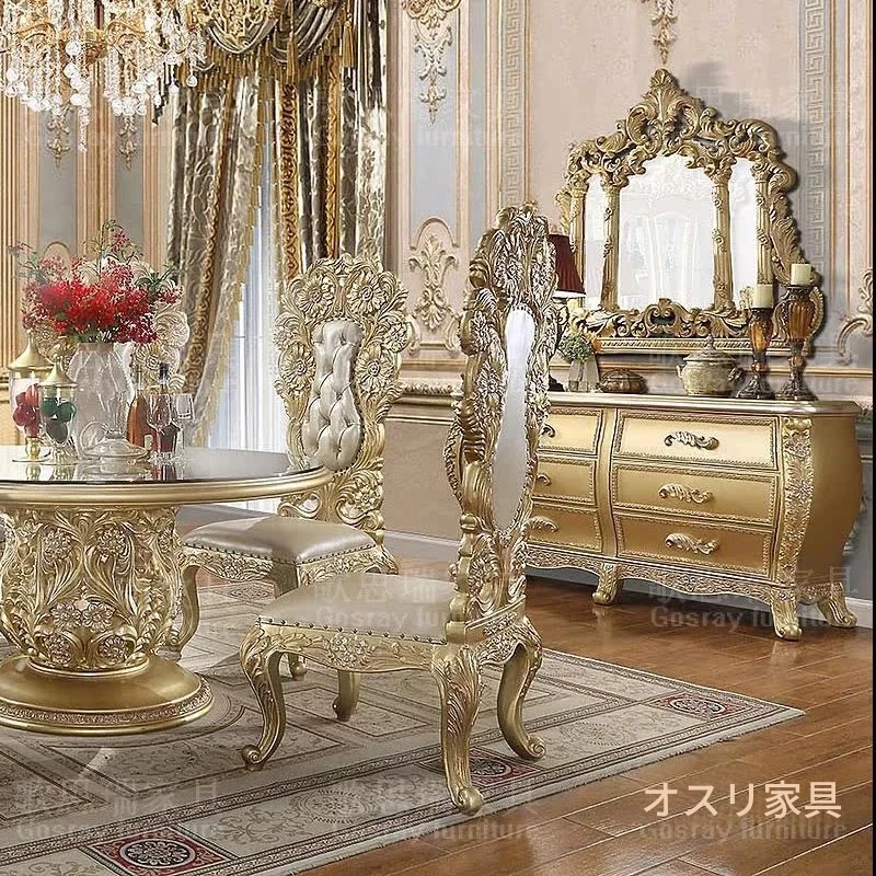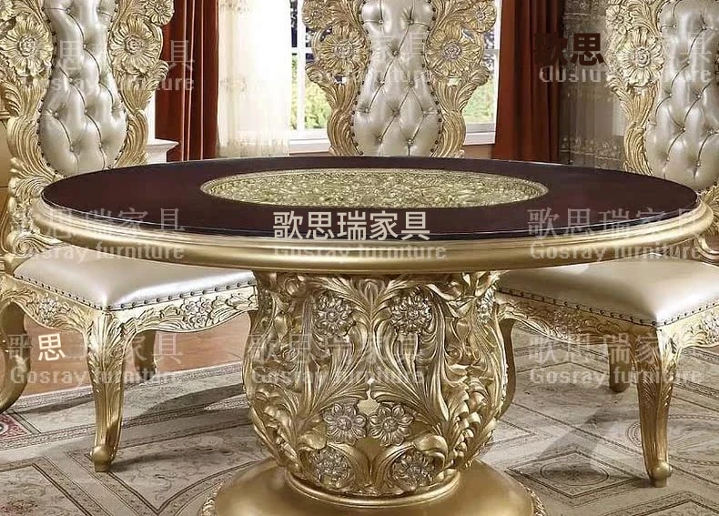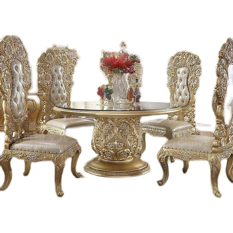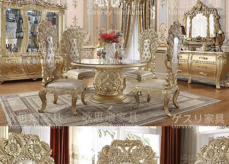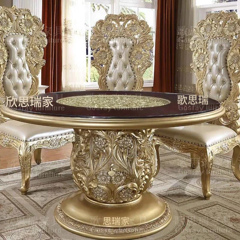 フランス式ラグジュアリー!欧風天然木製ダイニングテーブル - 丸型、家庭用、大型ビラやレストランに最適なテーブルと椅子のセット。食事をより特別なひとときに!