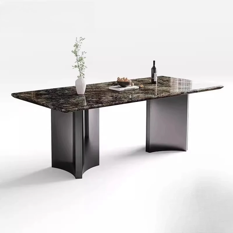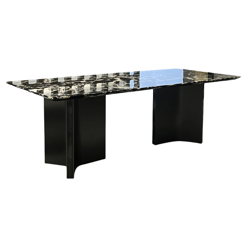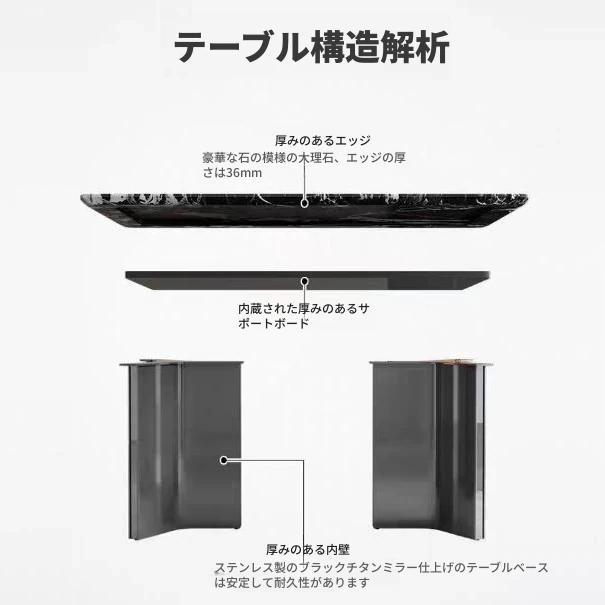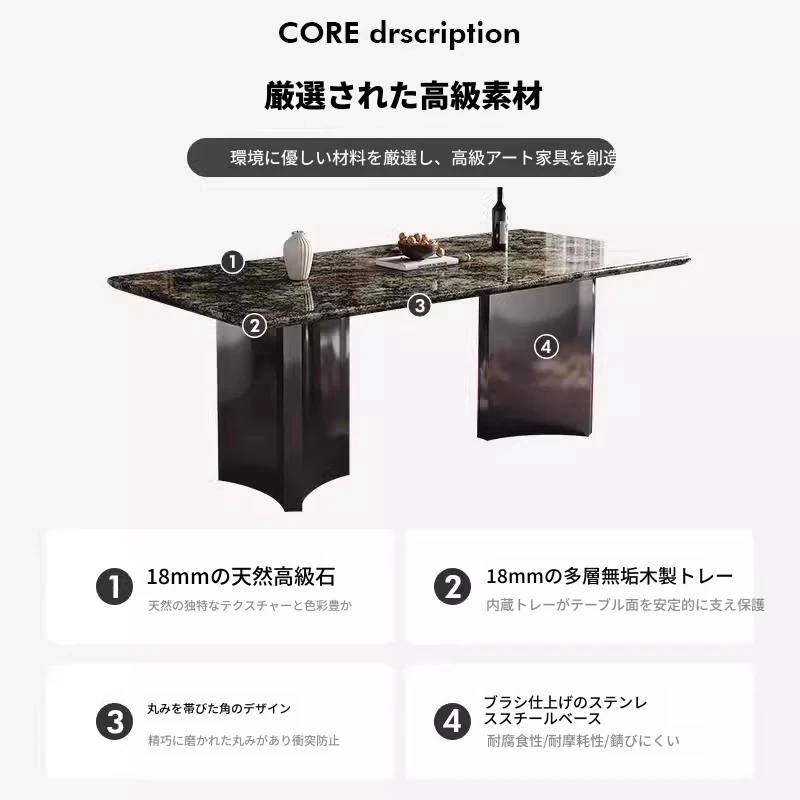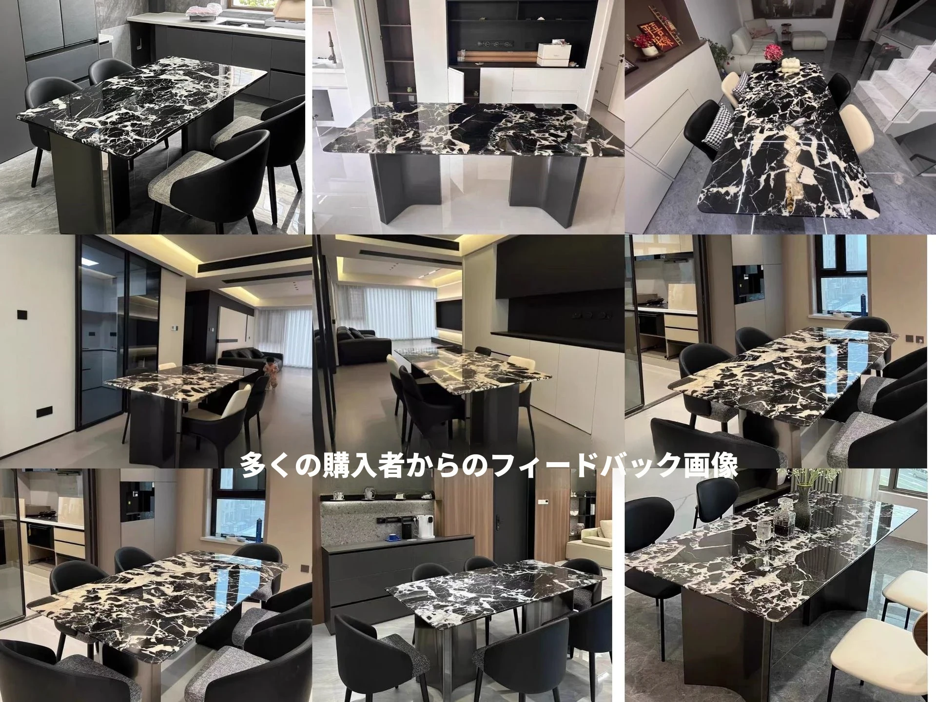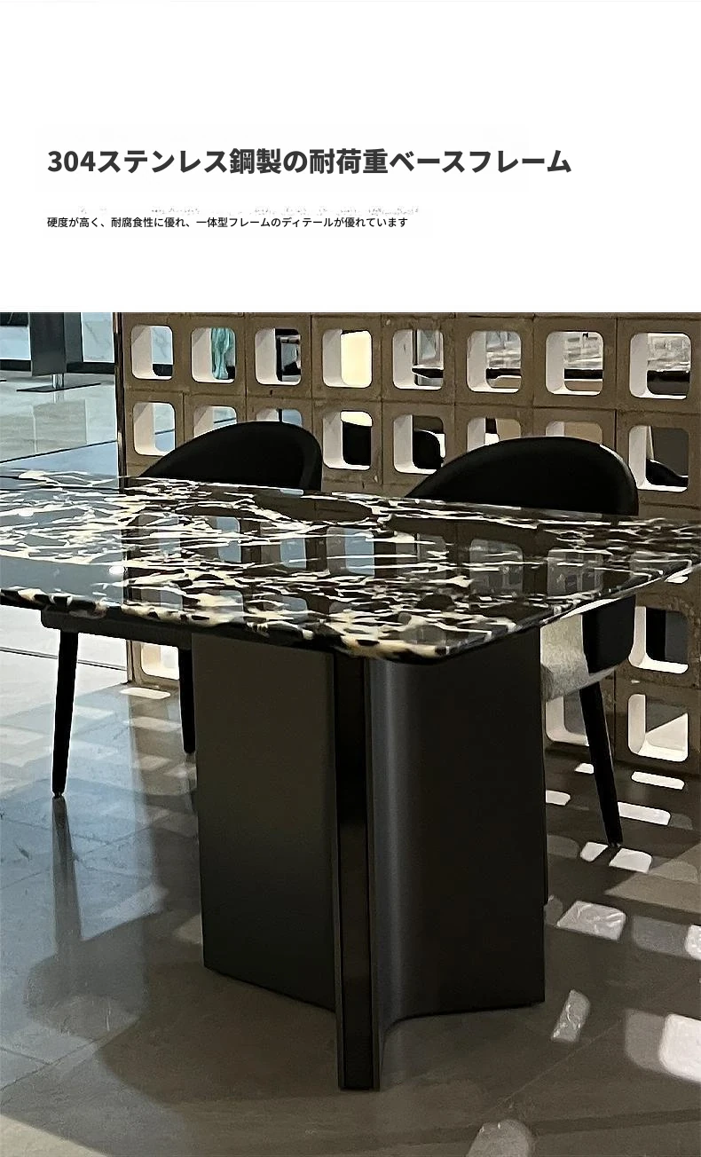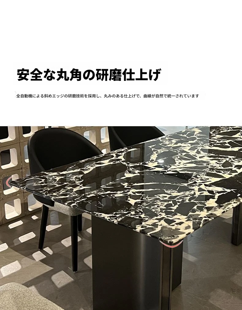 1.8mラグジュアリー石材ダイニングテーブル ブルガリブラック ボード選択可