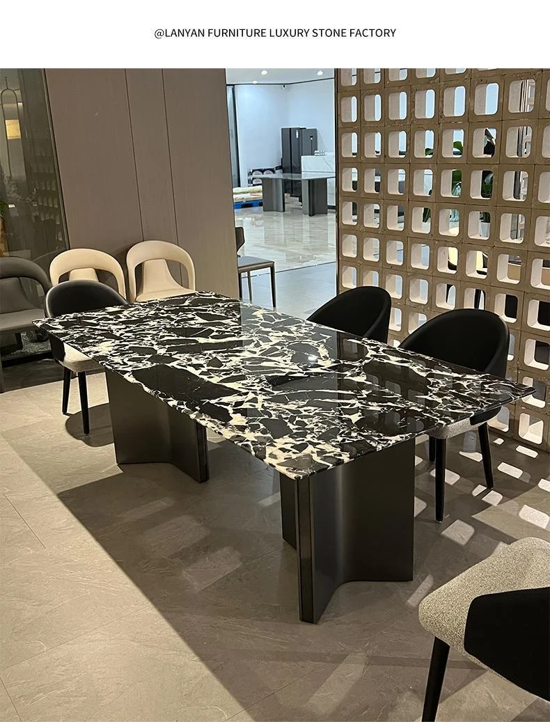 1.6mラグジュアリー石材ダイニングテーブル ブルガリブラック 品質保証